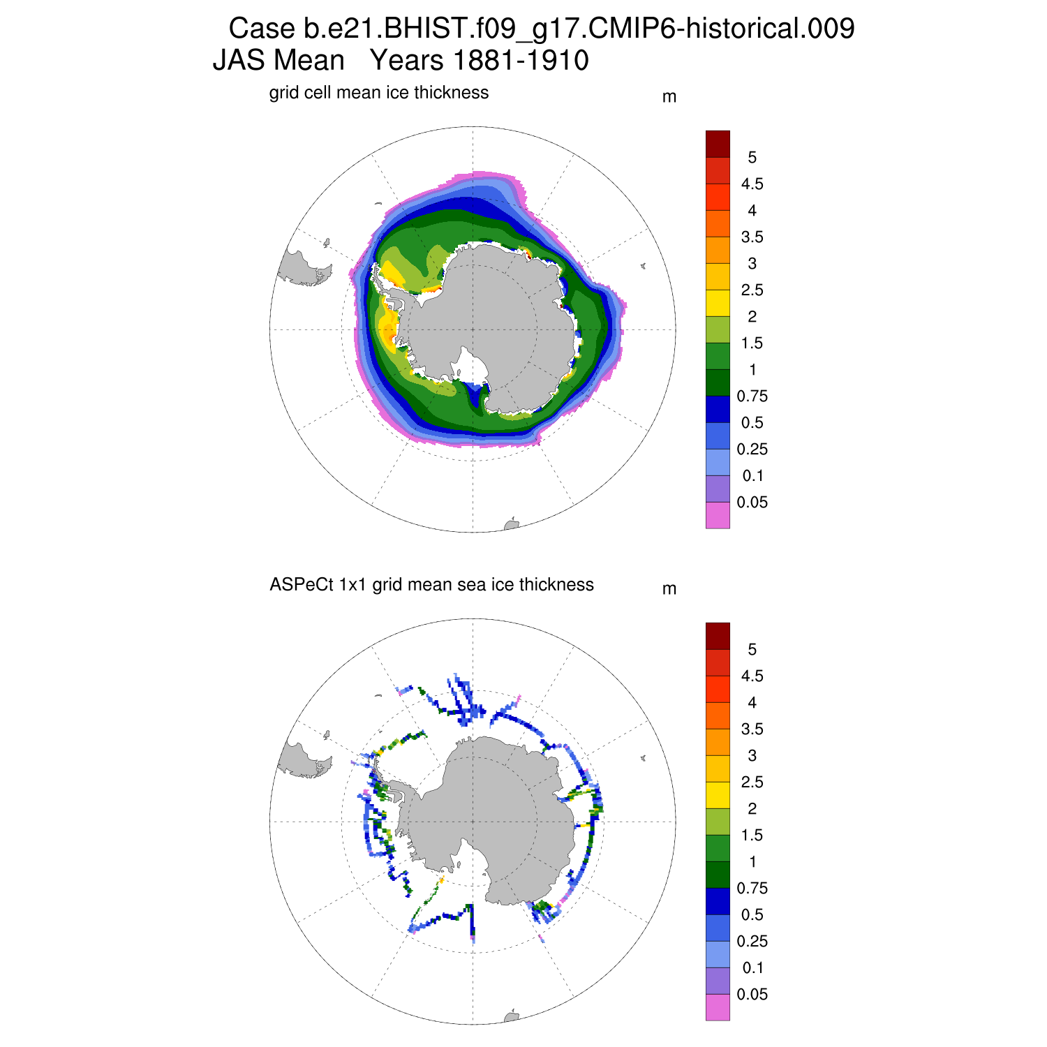 Ice Thickness vs ASPeCt (SH) Contour