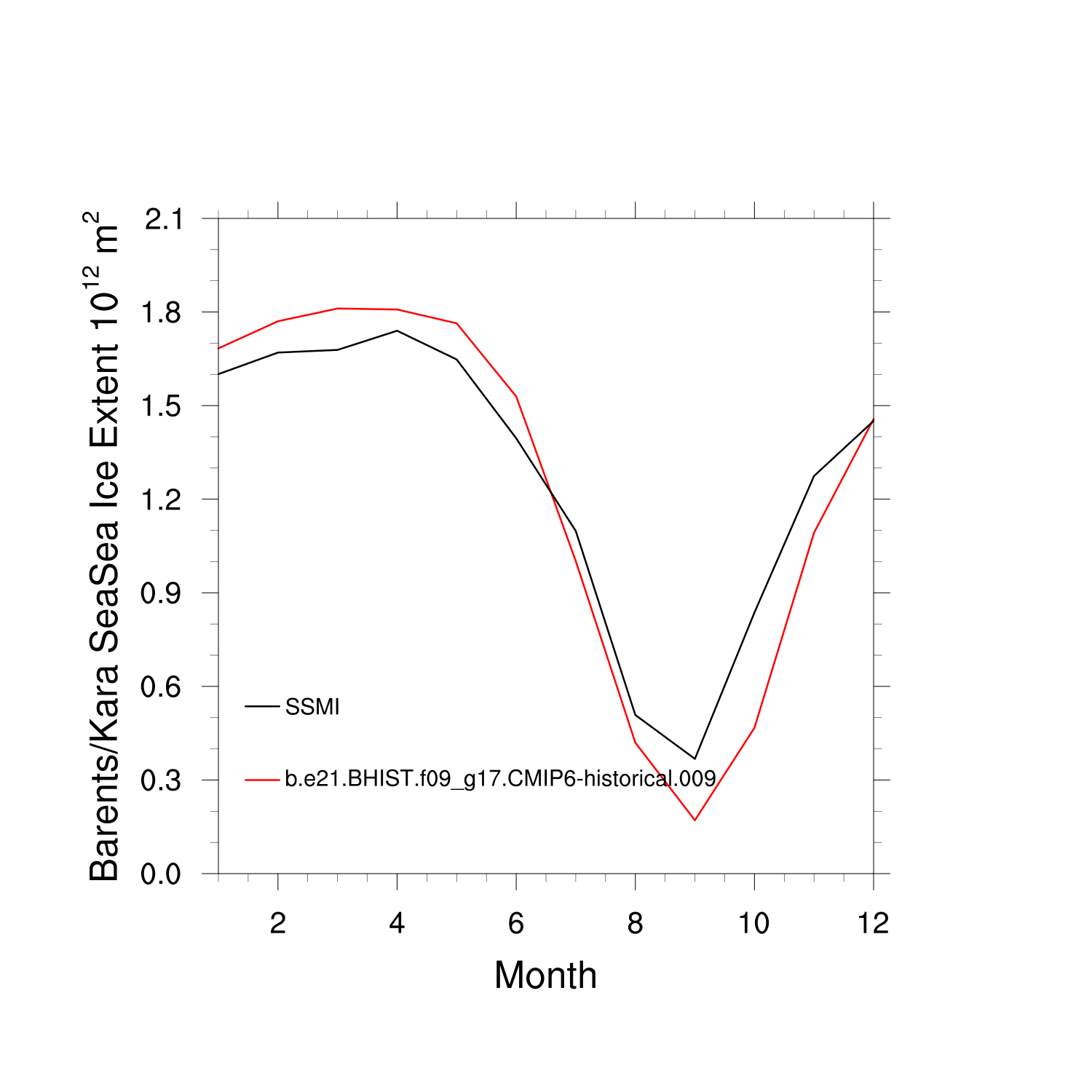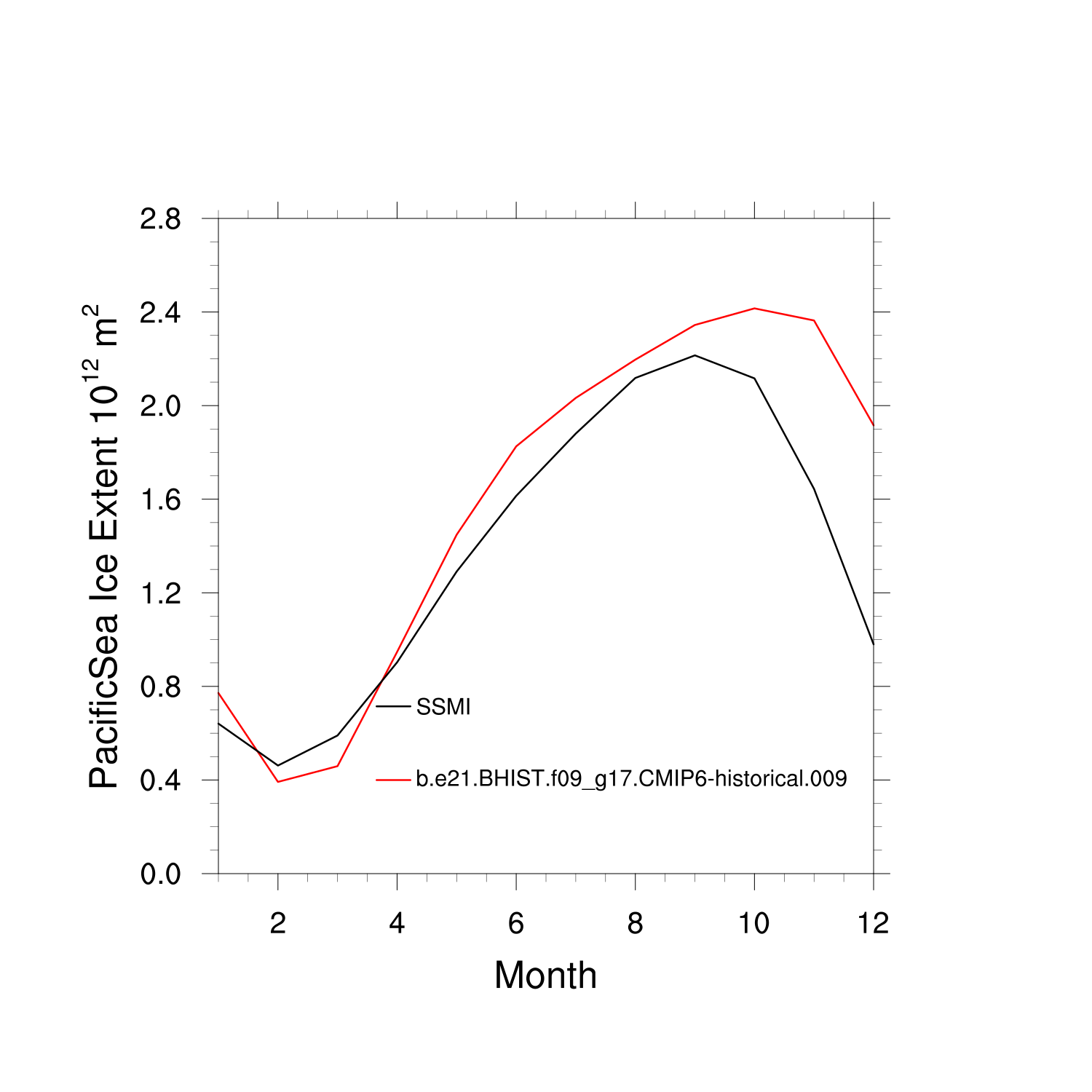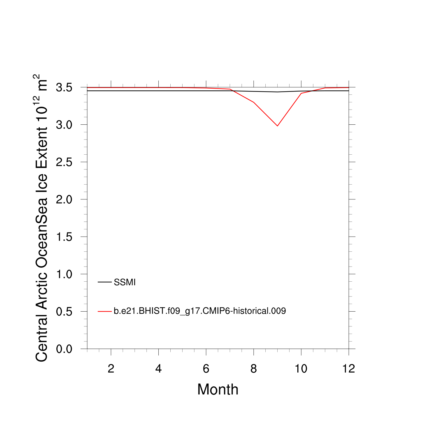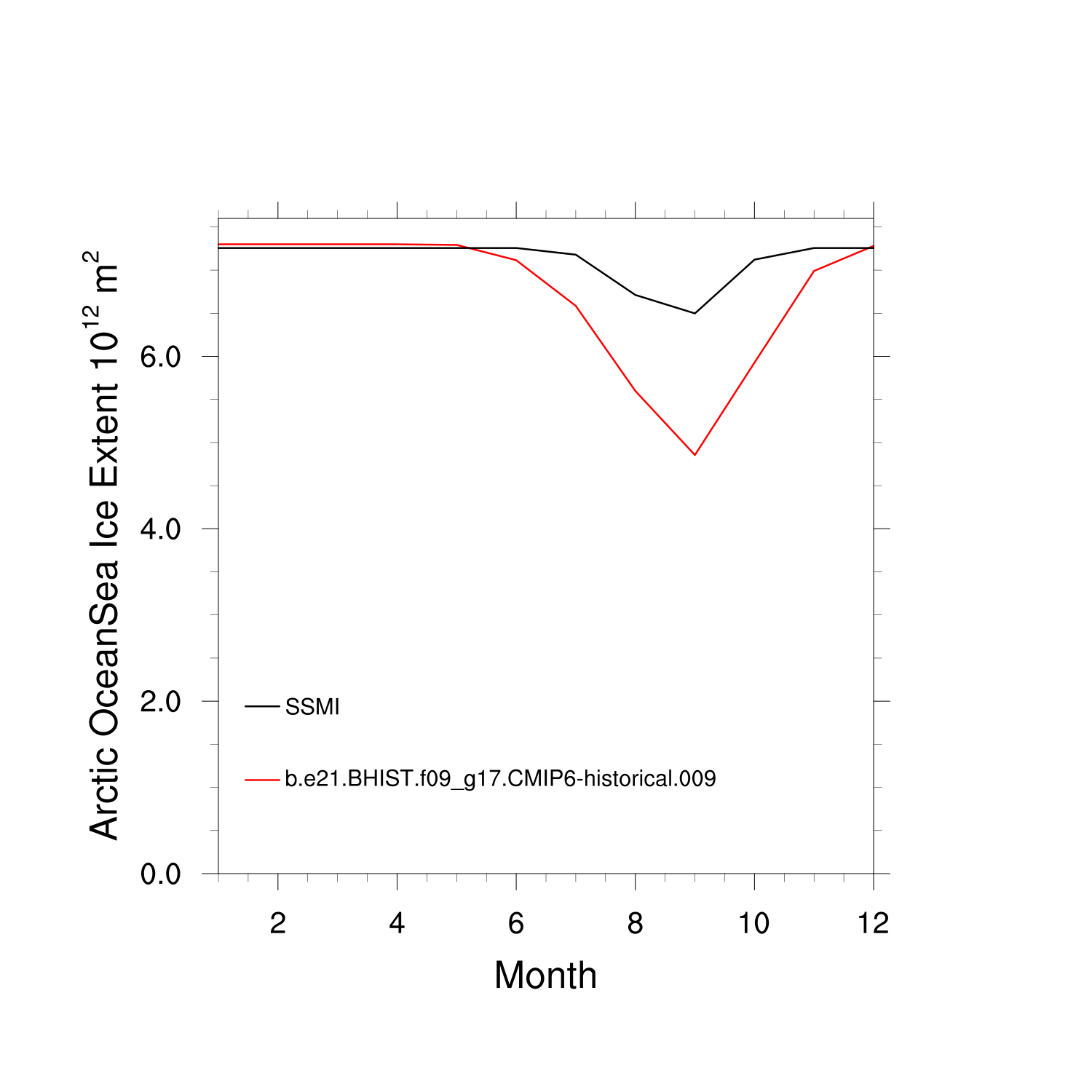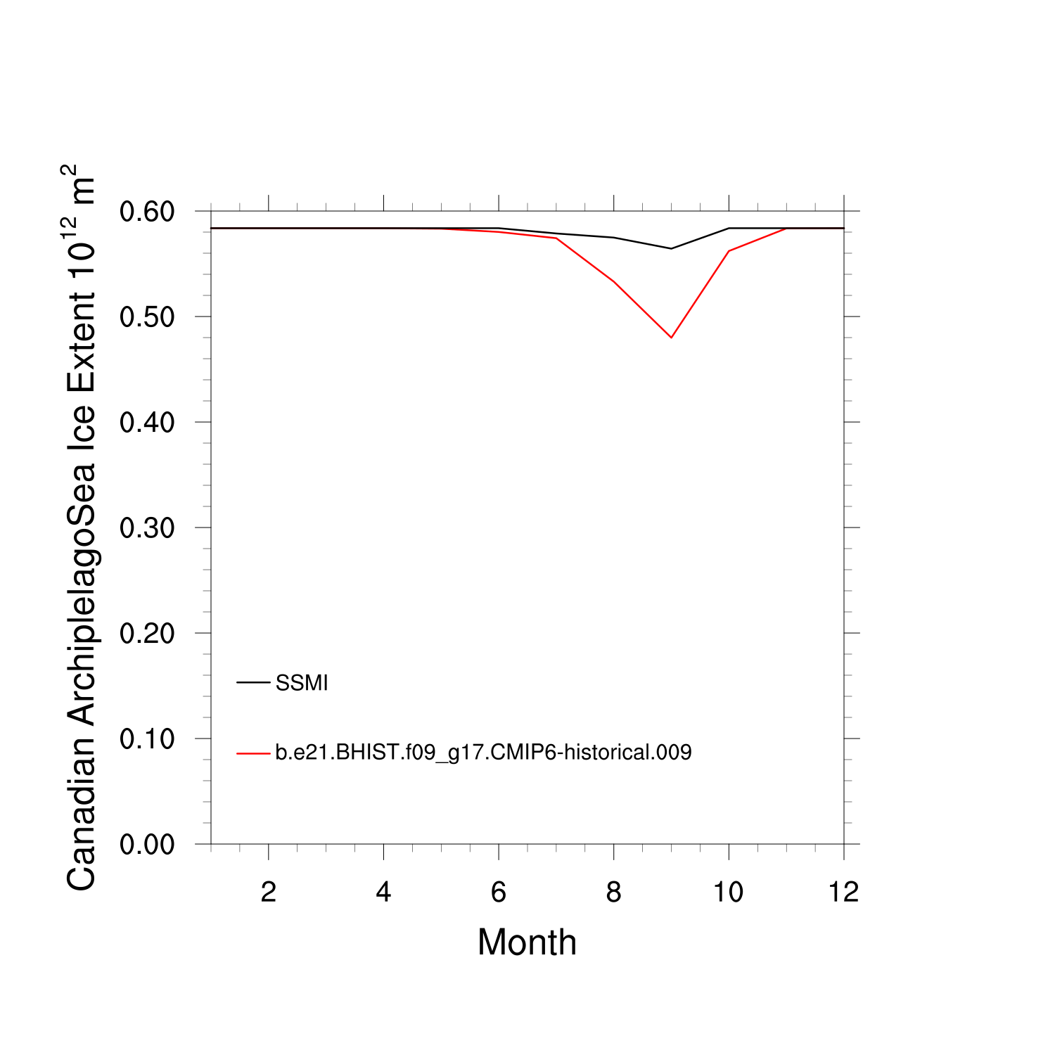 Climatological Monthly Mean Extent vs Obs plot