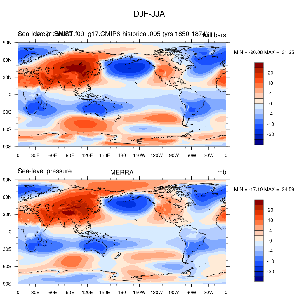 DIAG Set 9 - Horizontal contour plots of DJF-JJA differences