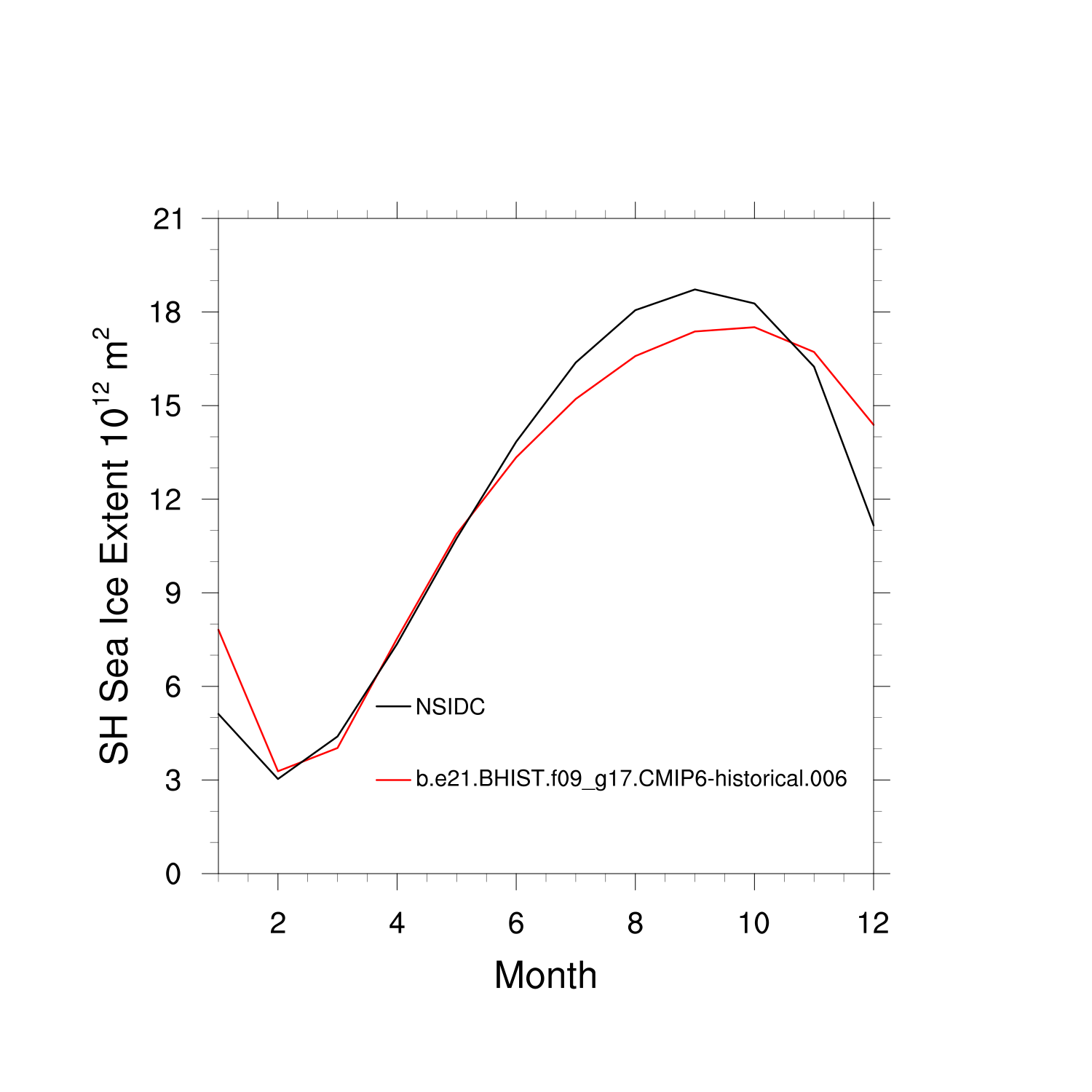 Climatological Monthly Mean Extent vs Obs plot plot