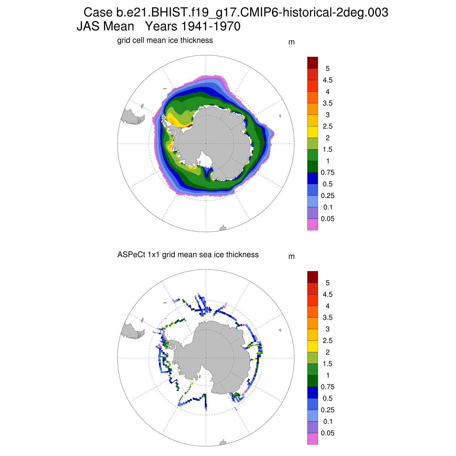 Ice Thickness vs ASPeCt (SH) Contour