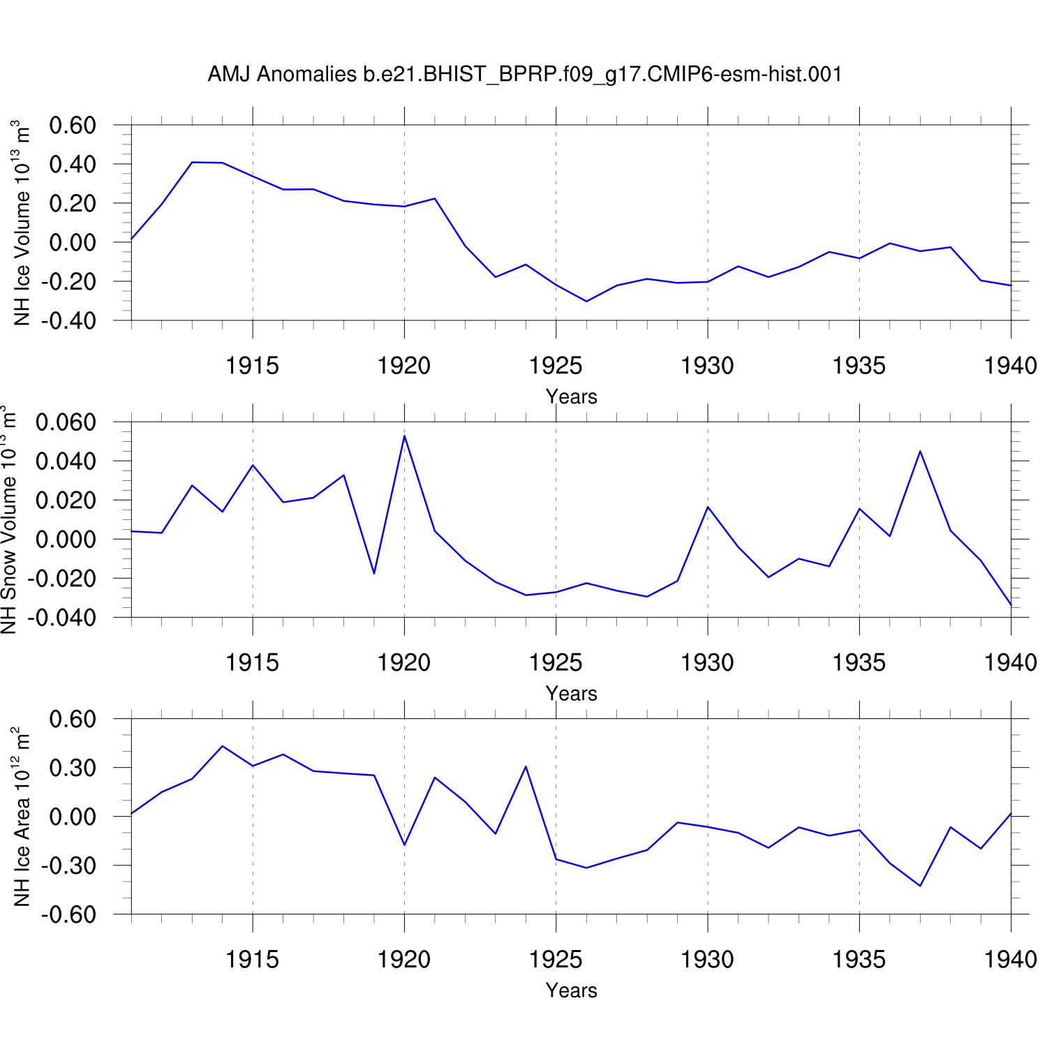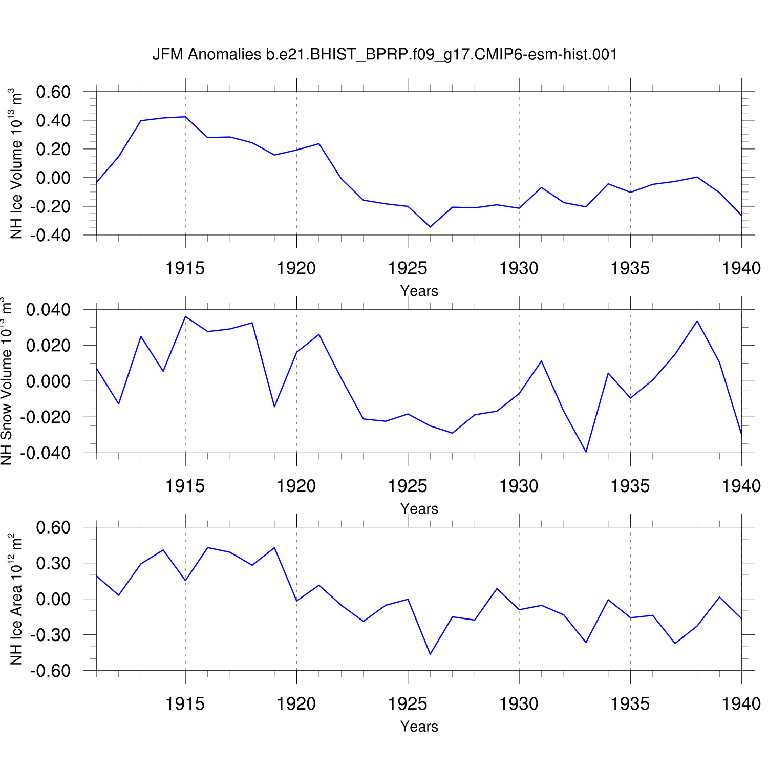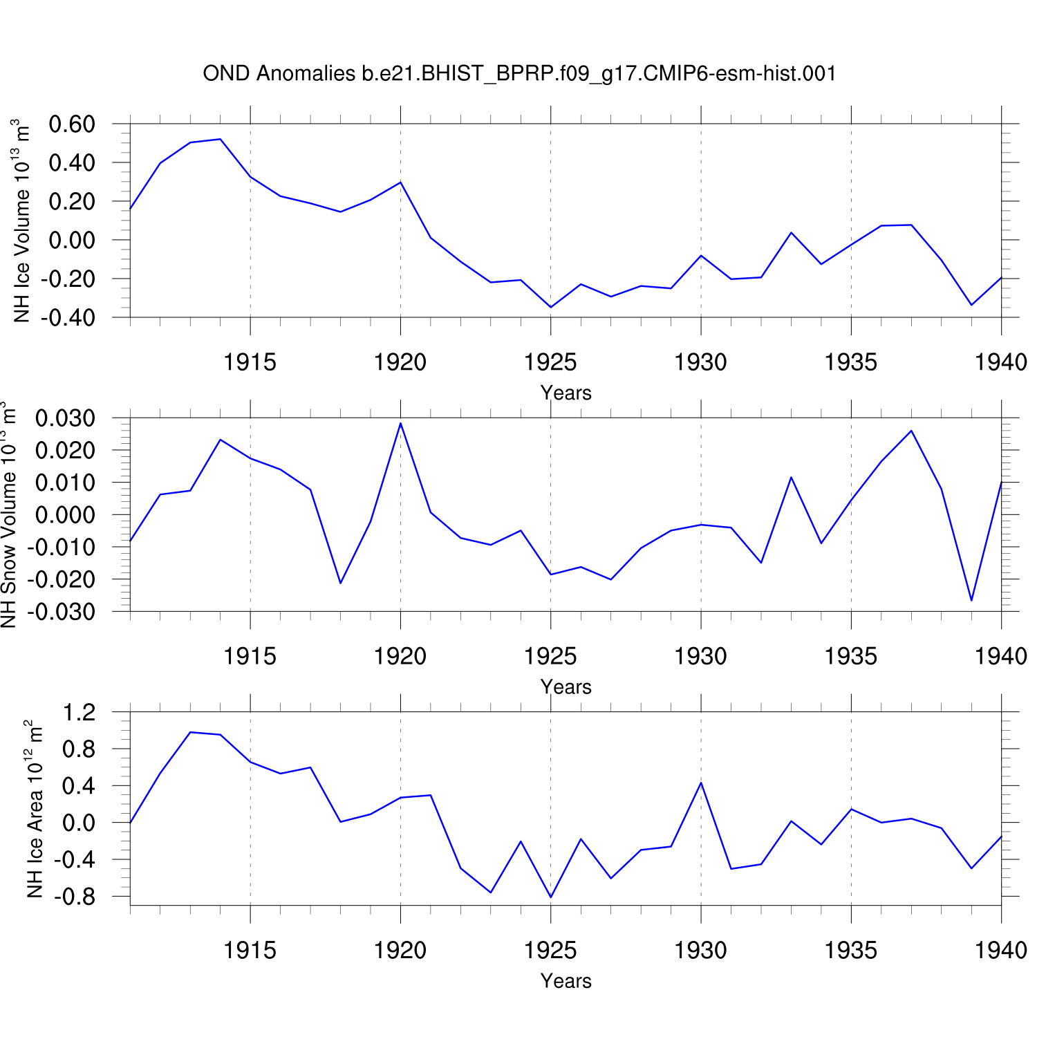 Time Series of Ice Volume, Snow Volume and Ice Area