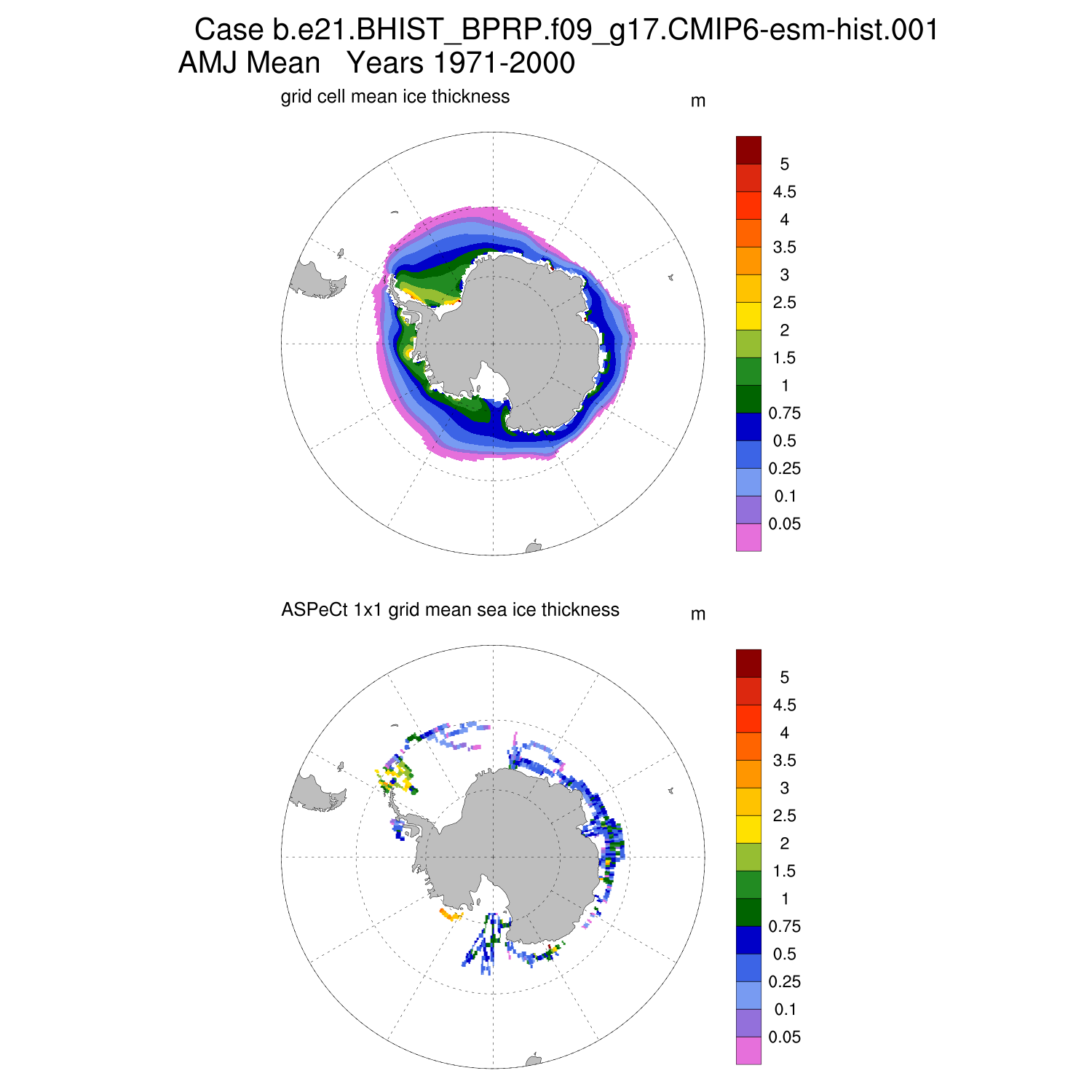 Ice Thickness vs ASPeCt (SH) Contour JFM AMJ JAS OND ASPeCt (SH) info