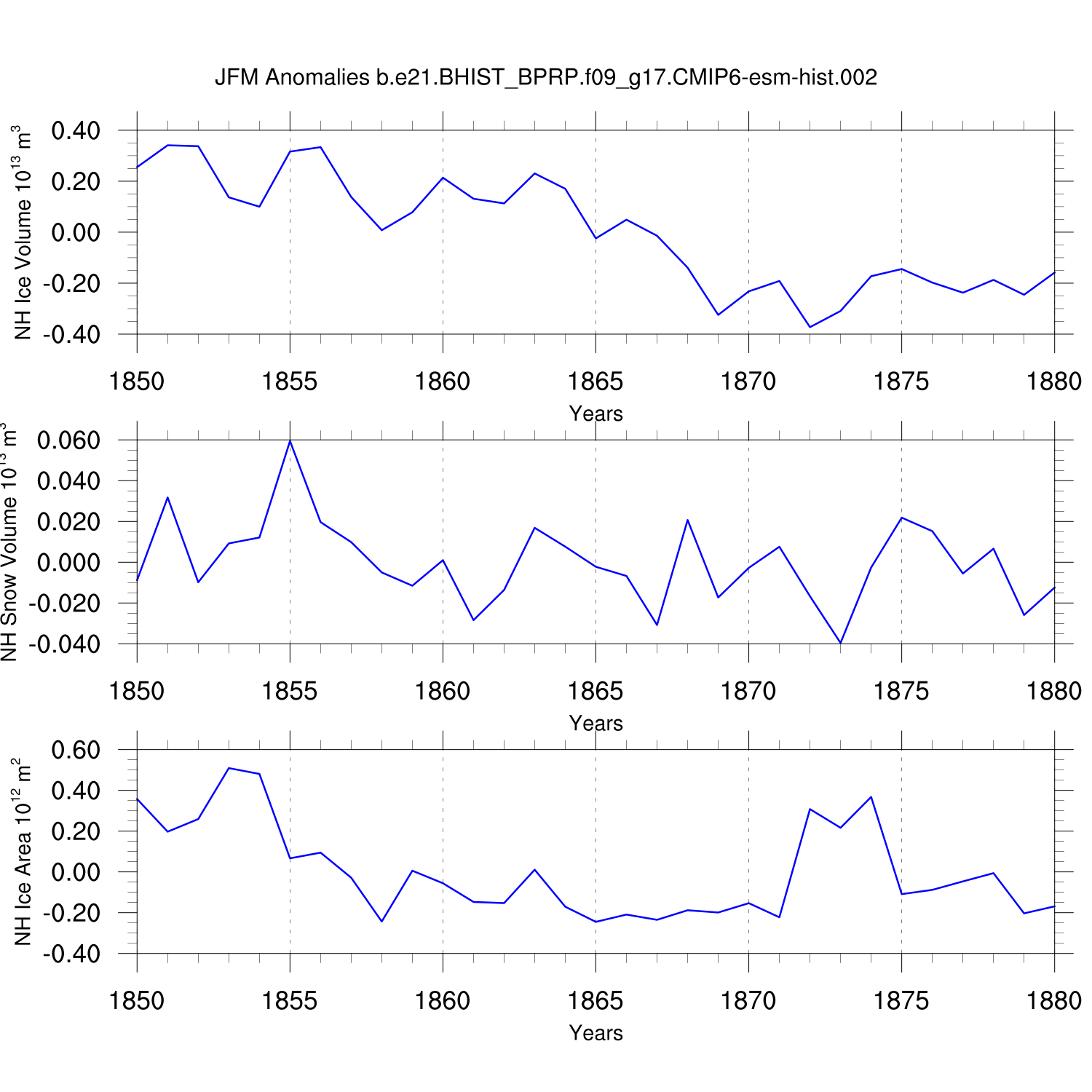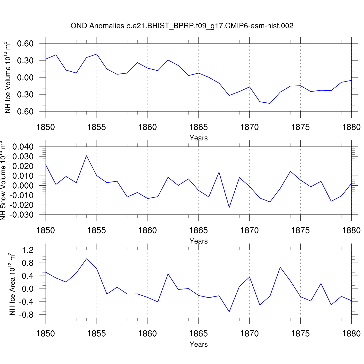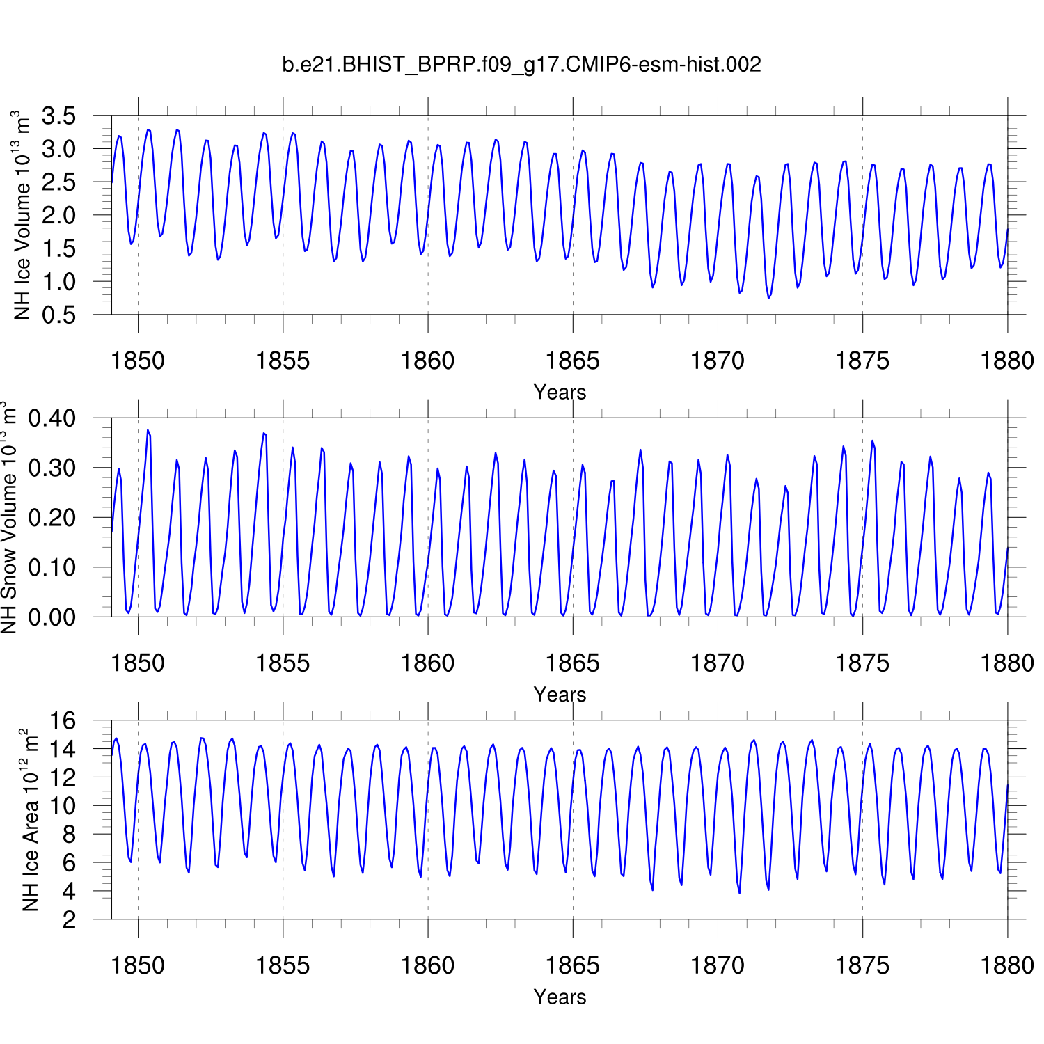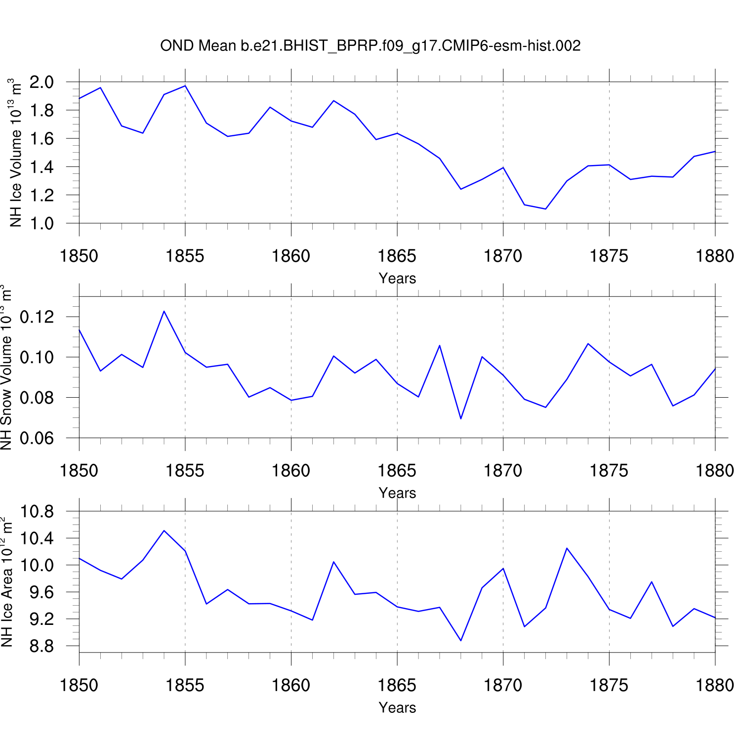 Time Series of Ice Volume, Snow Volume and Ice Area NH SH
