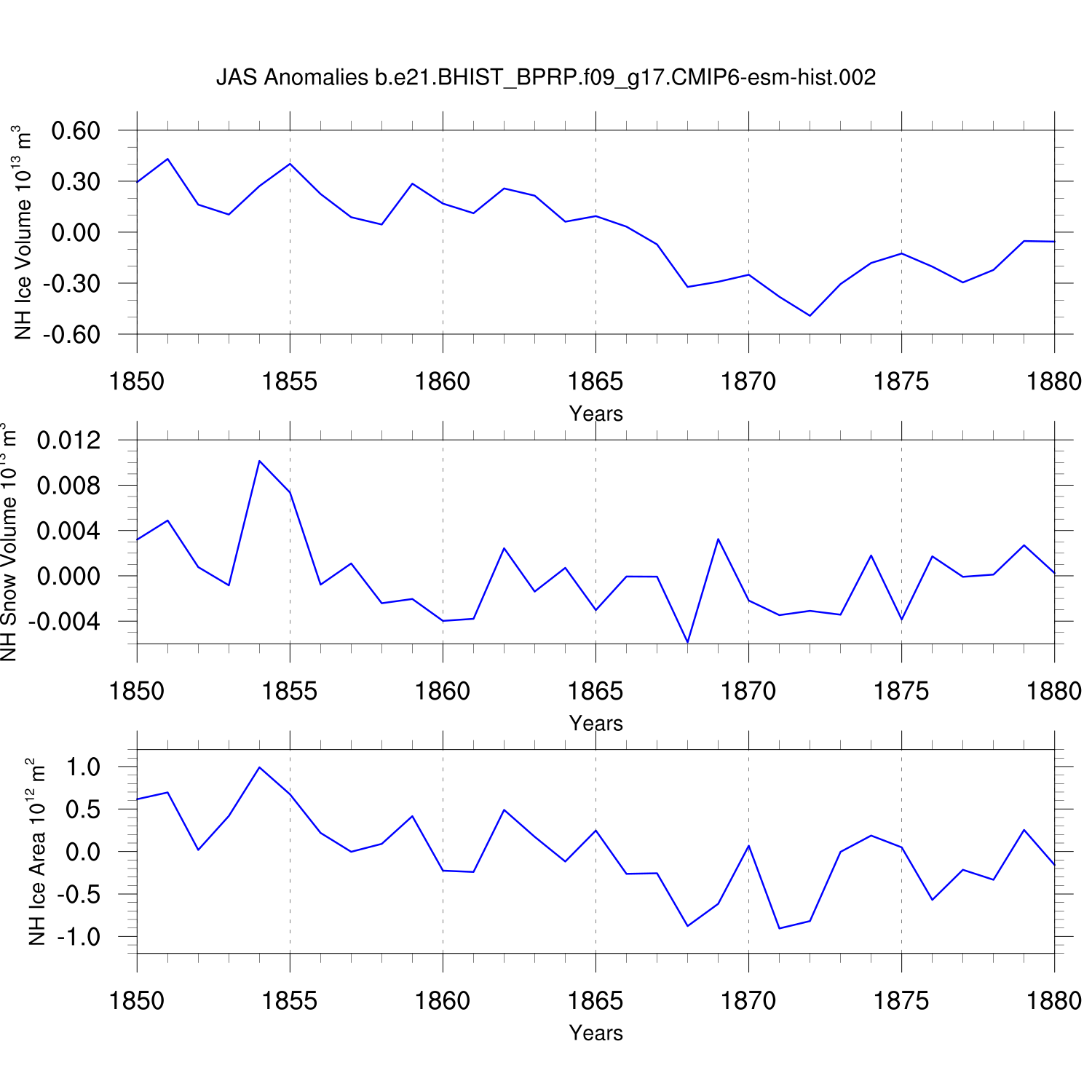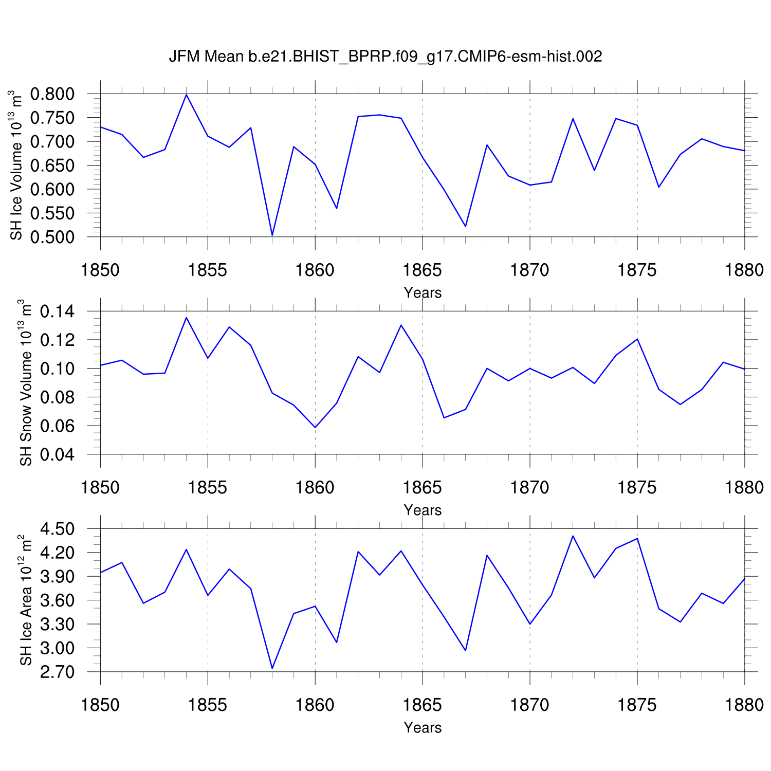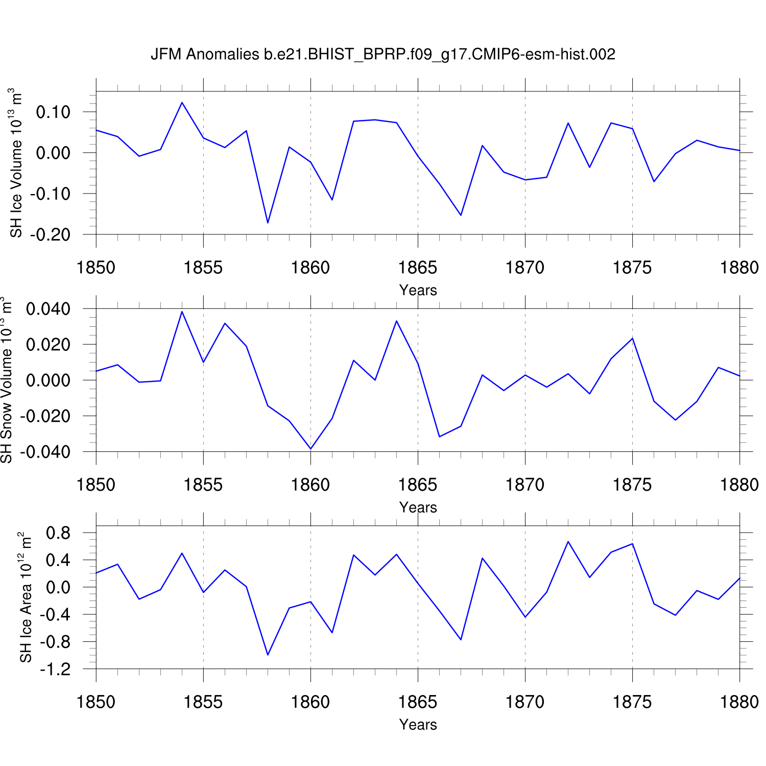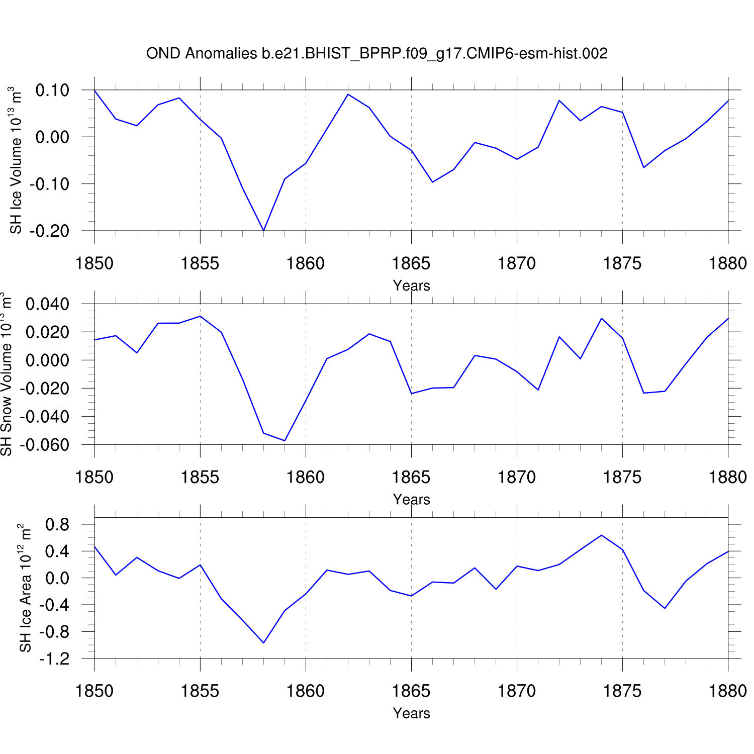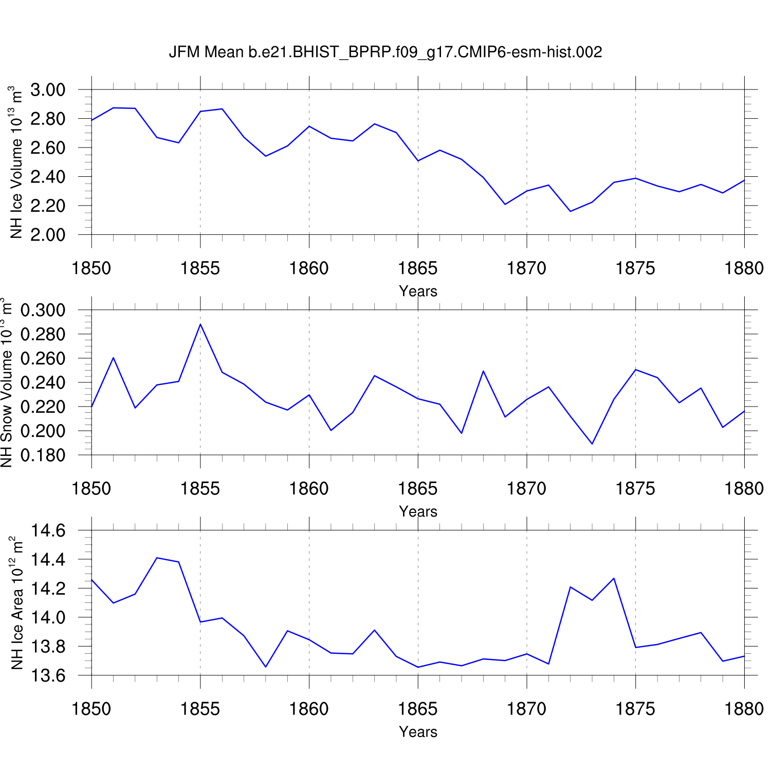 Time Series of Ice Volume, Snow Volume and Ice Area NH SH