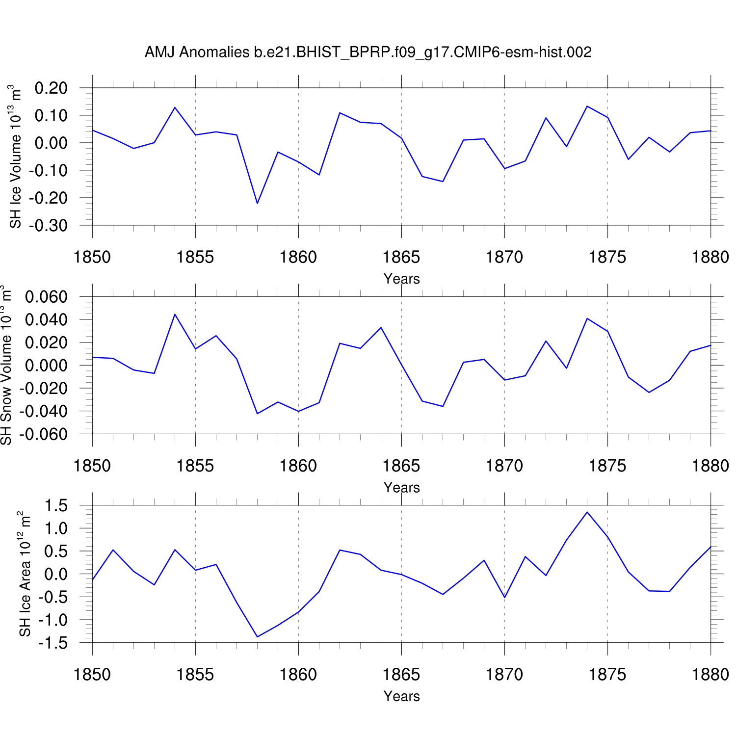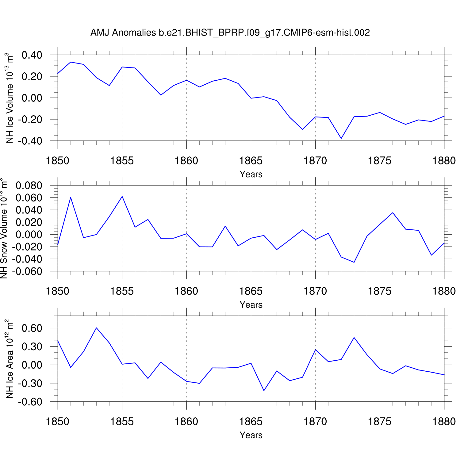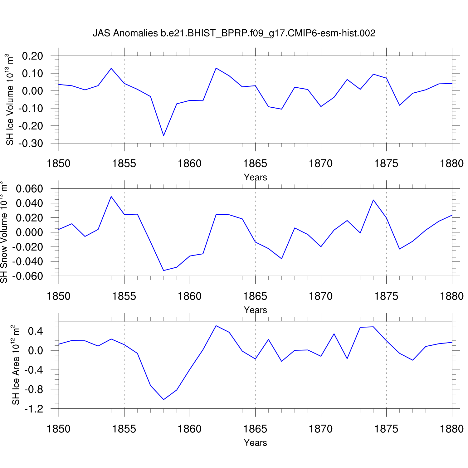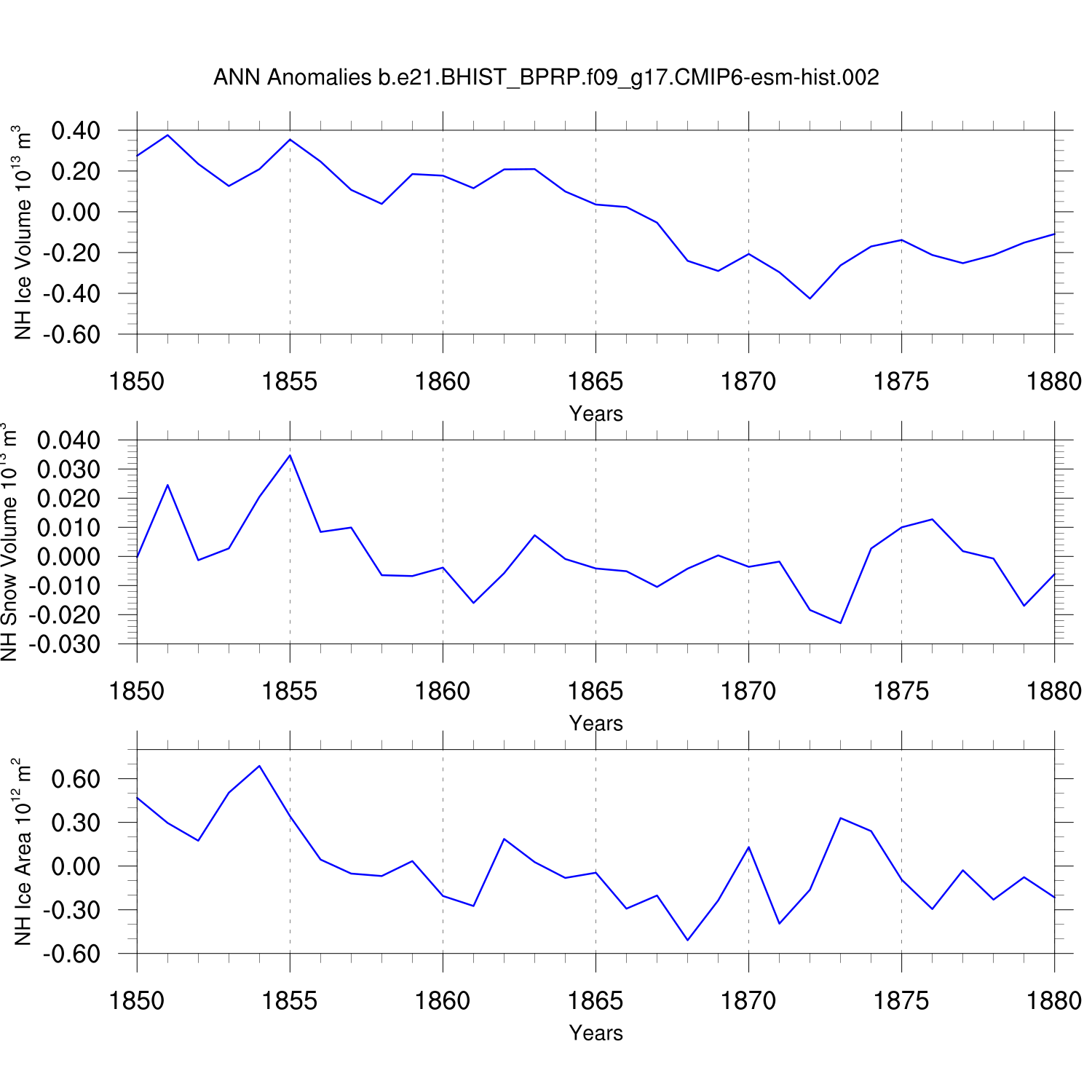 Time Series of Ice Volume, Snow Volume and Ice Area NH SH