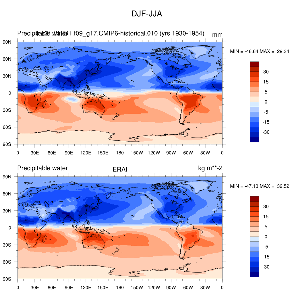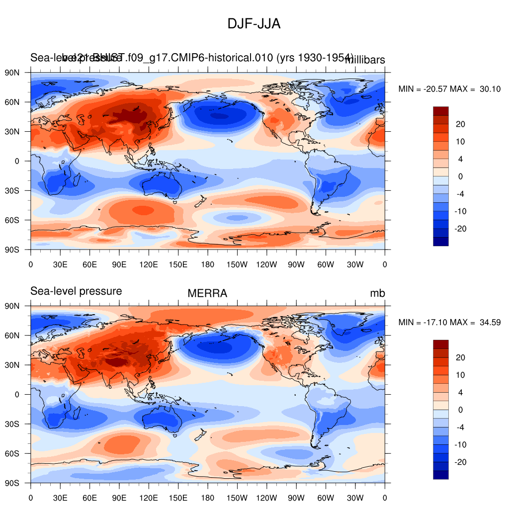 b.e21.BHIST.f09_g17.CMIP6-historical.010DIAG Set 9 - Horizontal contour plots of DJF-JJA differences