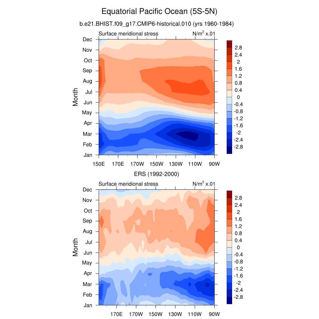 Surface Meridional Stress ERS 1992-2000 plot
