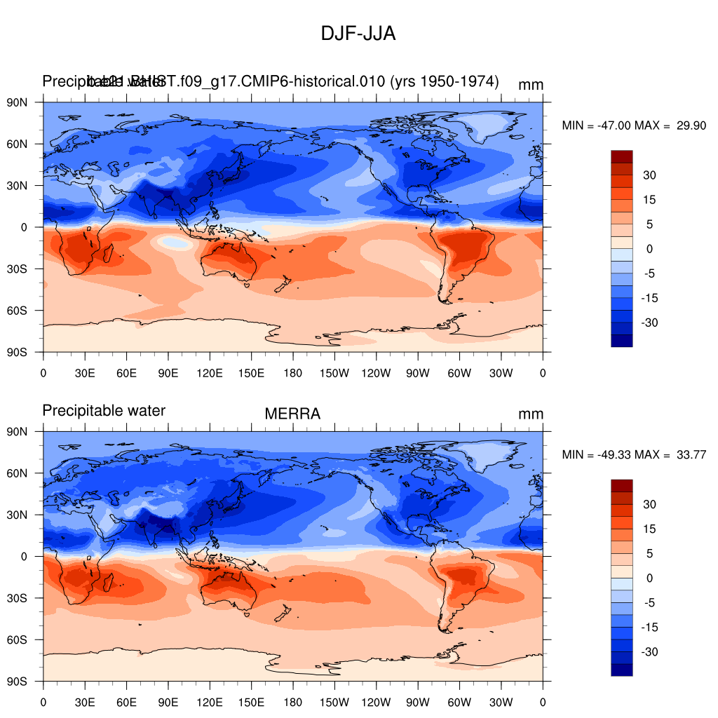 b.e21.BHIST.f09_g17.CMIP6-historical.010DIAG Set 9 - Horizontal contour plots of DJF-JJA differences