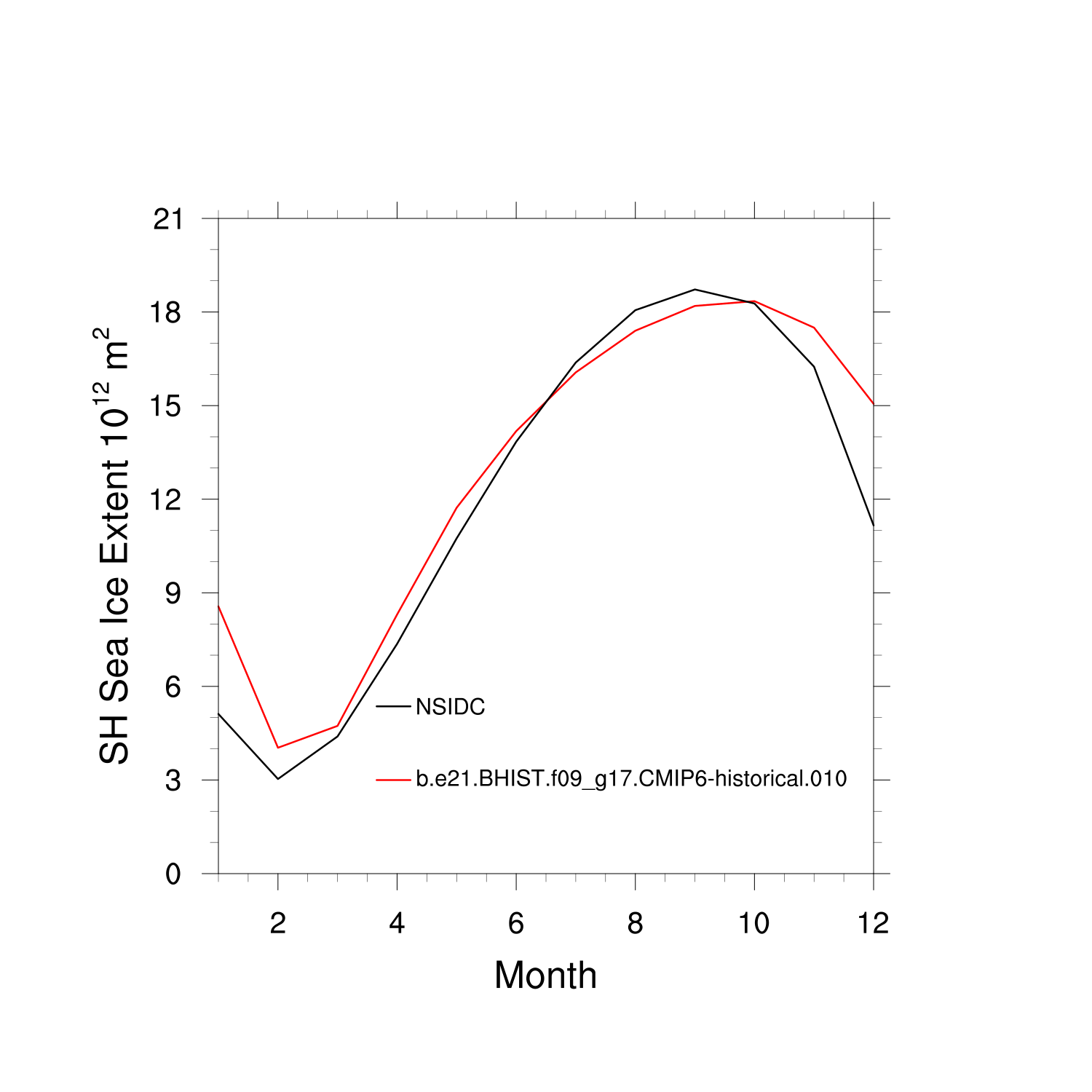 Climatological Monthly Mean Extent vs Obs plot plot