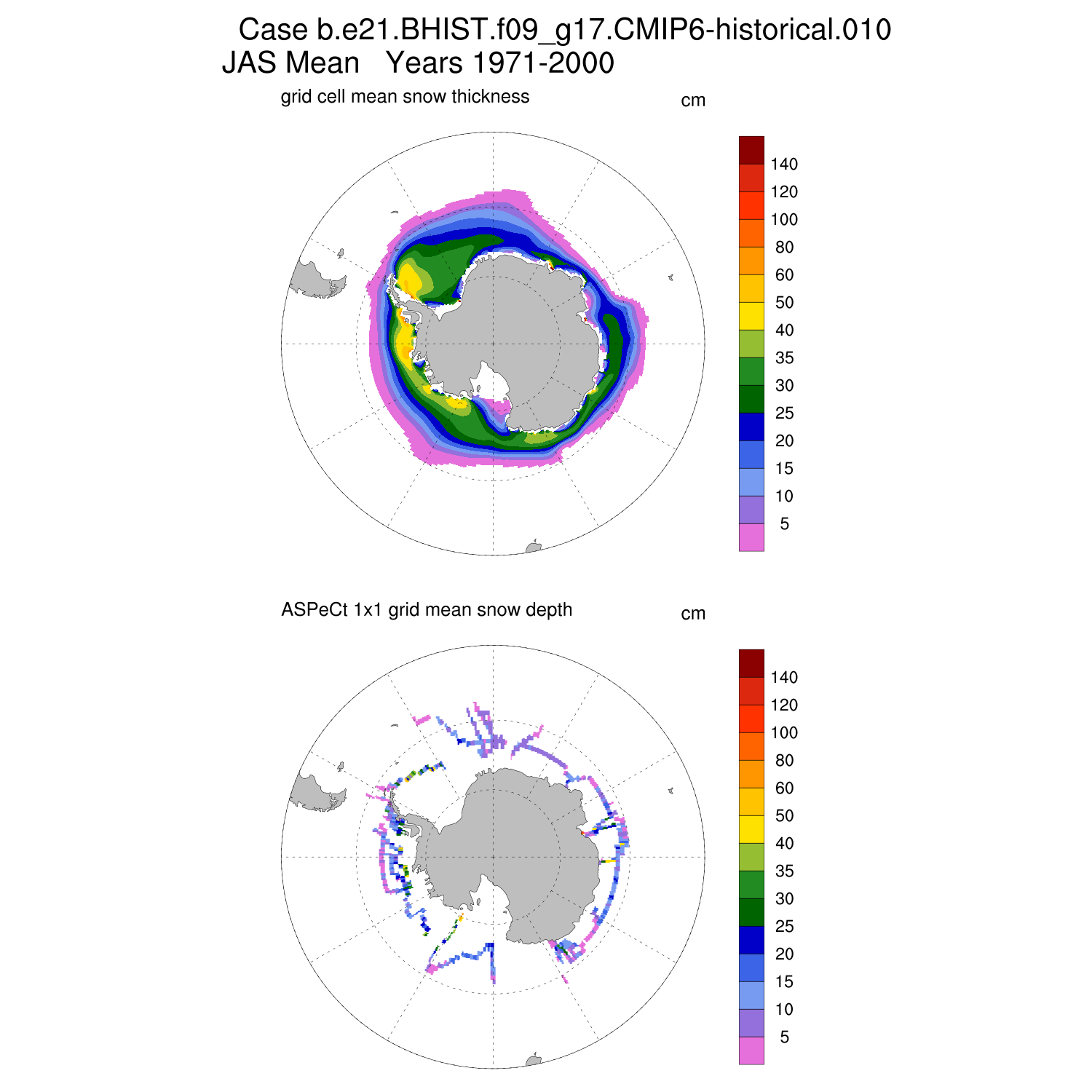 Snow Depth vs ASPeCt (SH) Contour JFM AMJ JAS OND ASPeCt (SH) info