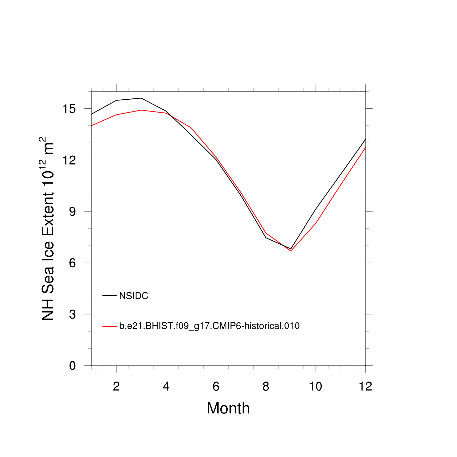 Climatological Monthly Mean Extent vs Obs plot plot