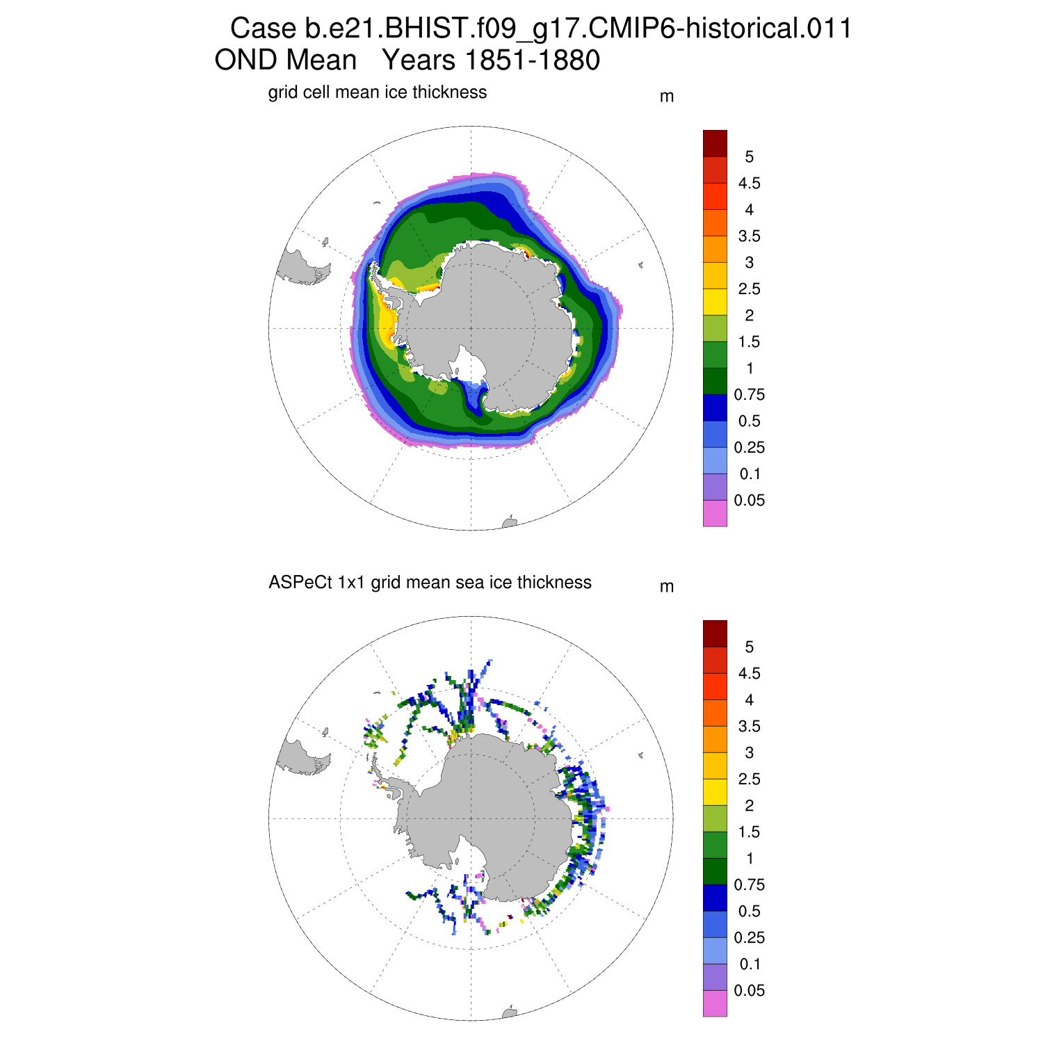 Ice Thickness vs ASPeCt (SH) Contour