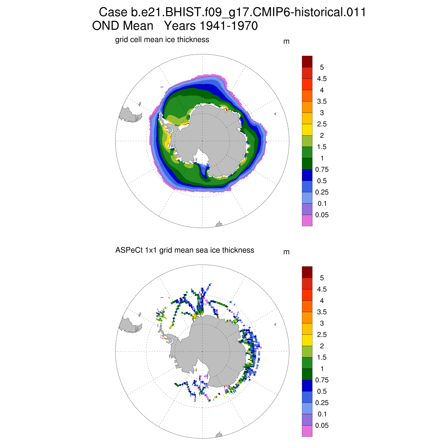 Ice Thickness vs ASPeCt (SH) Contour JFM AMJ JAS OND ASPeCt (SH) info