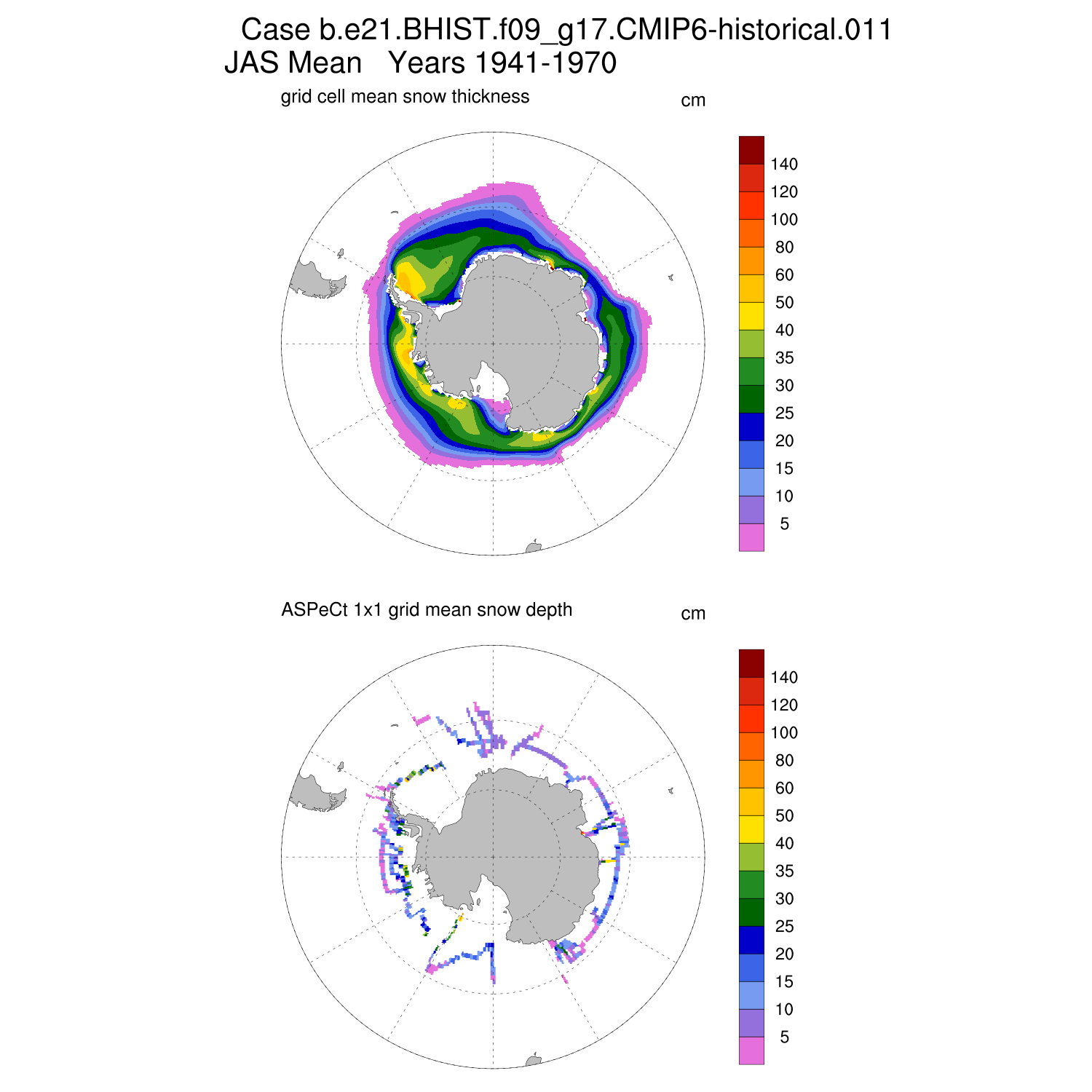 Snow Depth vs ASPeCt (SH) Contour JFM AMJ JAS OND ASPeCt (SH) info