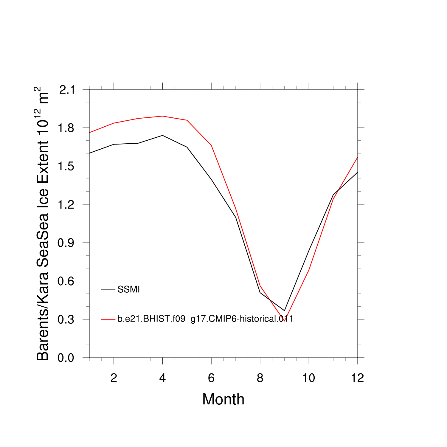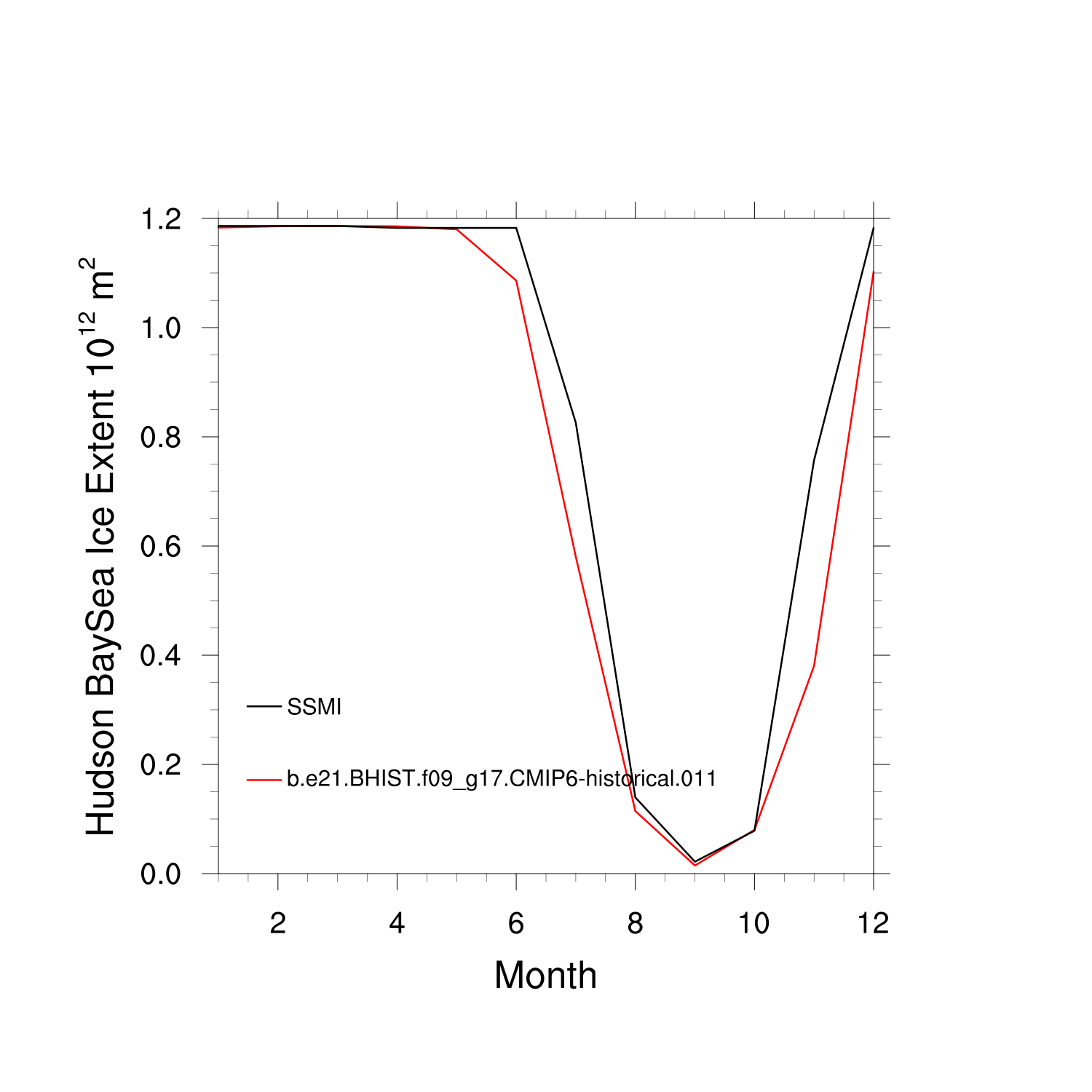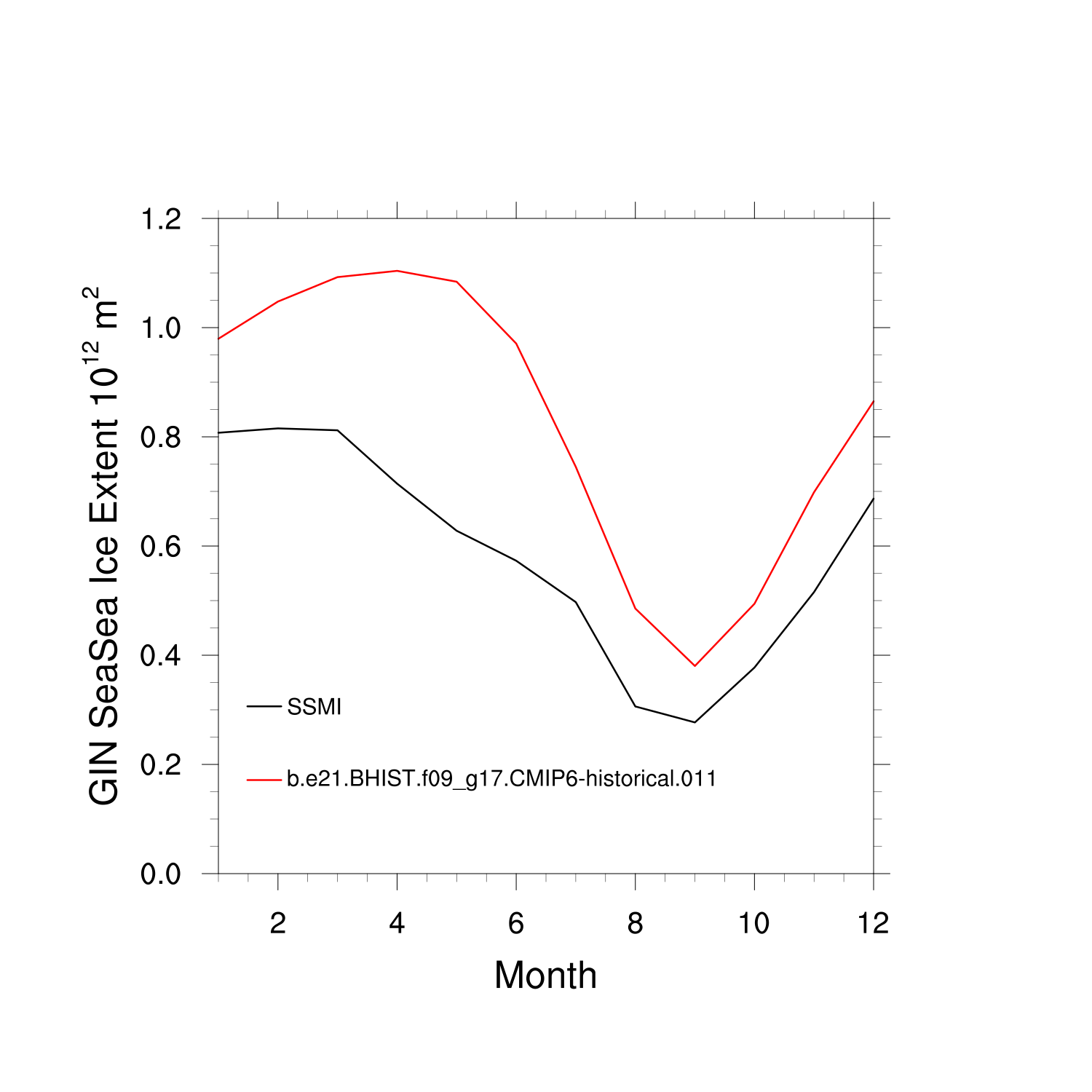 Climatological Monthly Mean Extent vs Obs plot