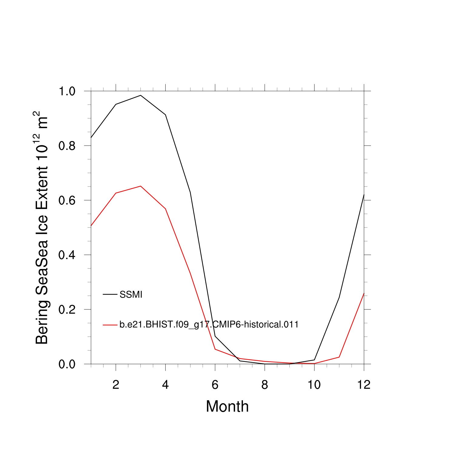 Climatological Monthly Mean Extent vs Obs plot Climatological Monthly Mean Extent vs Obs plot