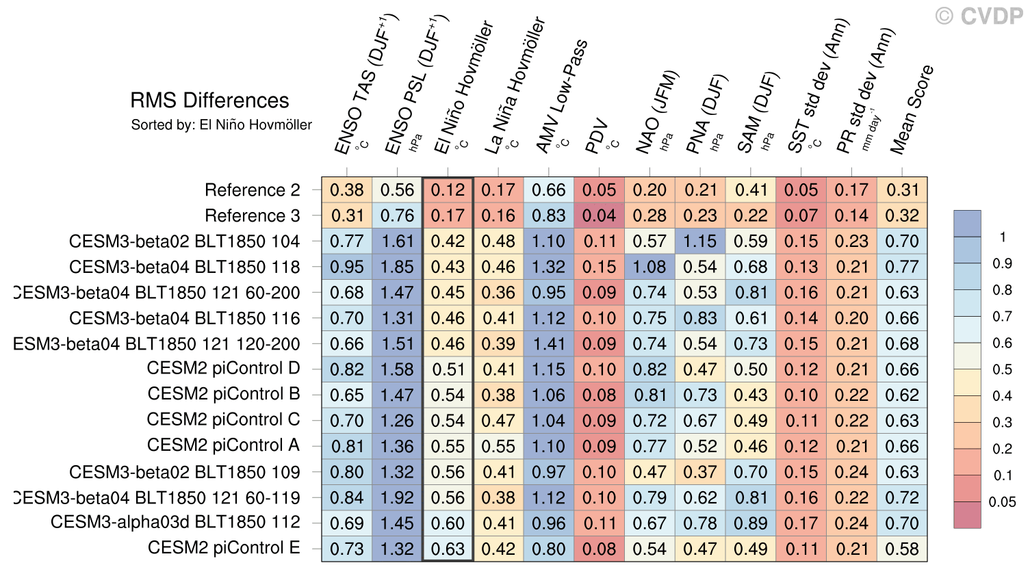 | Sort By: | Namelist (default) | Namelist (Alphabetically) | ENSO TAS | ENSO PSL | El Niño Hovmöller | La Niña Hovmöller | AMV Low-Pass | PDV | NAO | PNA | SAM | SST std dev | PR std dev | Mean Score |