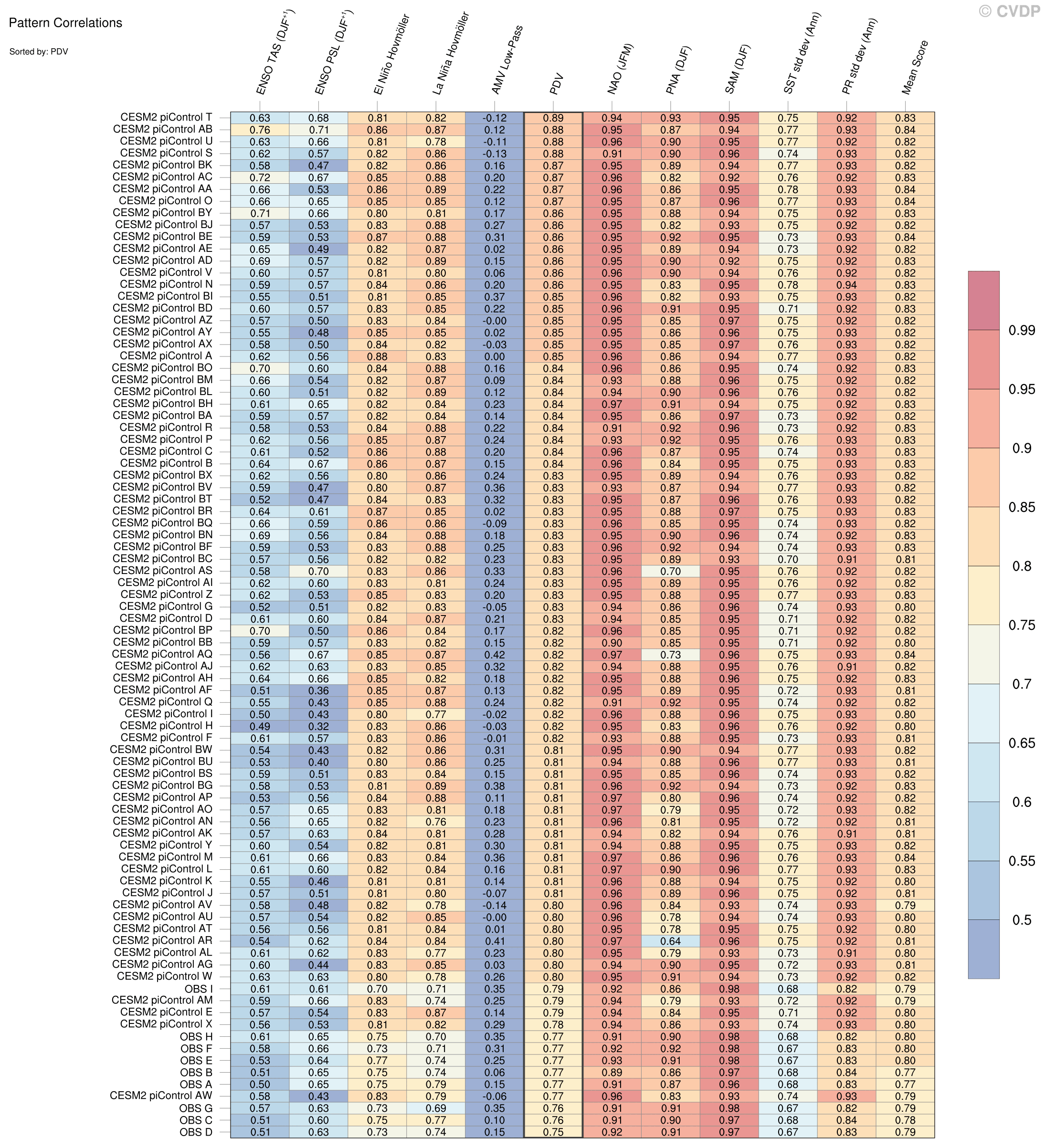 | Sort By: | Namelist (default) | Namelist (Alphabetically) | ENSO TAS | ENSO PSL | El Niño Hovmöller La Niña Hovmöller | AMV Low-Pass | PDV | NAO | PNA | SAM | SST std dev | PR std dev | Mean Score |