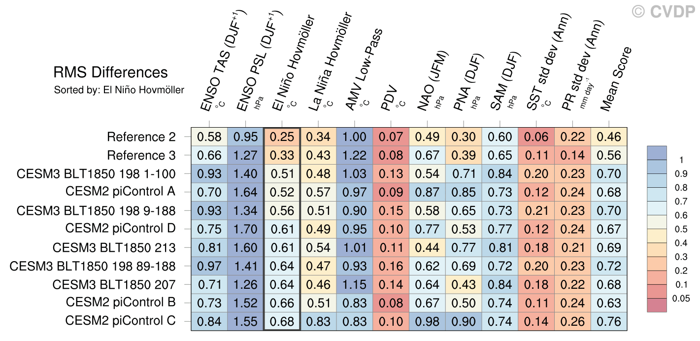 | Sort By: | Namelist (default) | Namelist (Alphabetically) | ENSO TAS | ENSO PSL | El Niño Hovmöller | La Niña Hovmöller | AMV Low-Pass | PDV | NAO | PNA | SAM | SST std dev | PR std dev | Mean Score |