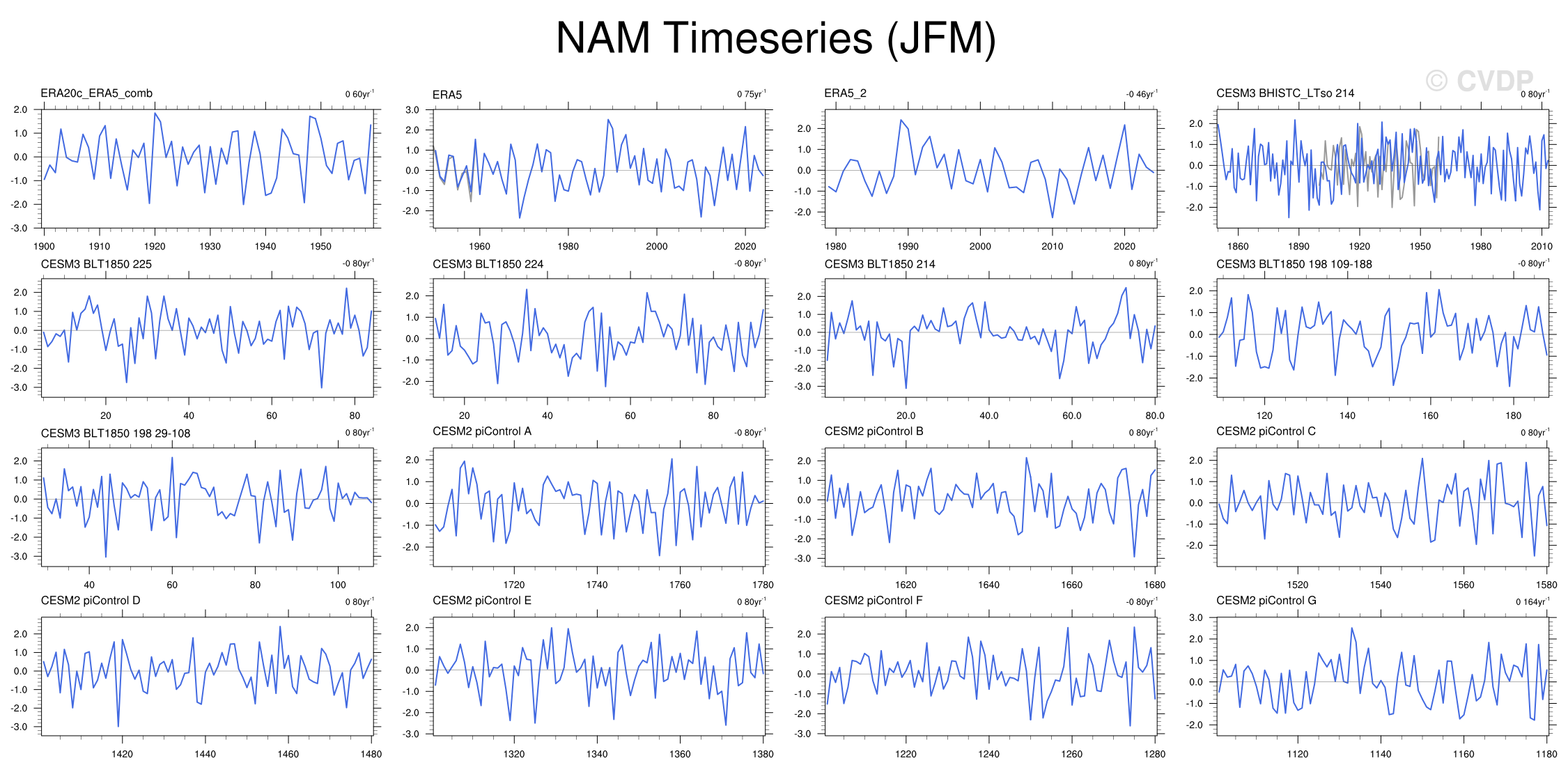 CESM3 198/214/224/225piC + 214bhist comparison (detrended)
