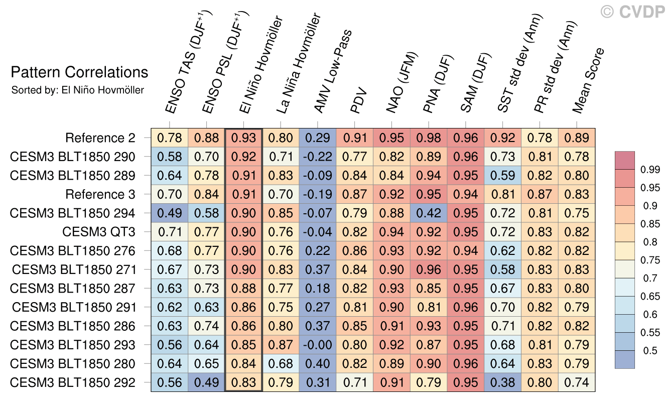 | Sort By: | Namelist (default) | Namelist (Alphabetically) | ENSO TAS | ENSO PSL | El Niño Hovmöller | La Niña Hovmöller | AMV Low-Pass | PDV | NAO | PNA | SAM | SST std dev | PR std dev | Mean Score |
