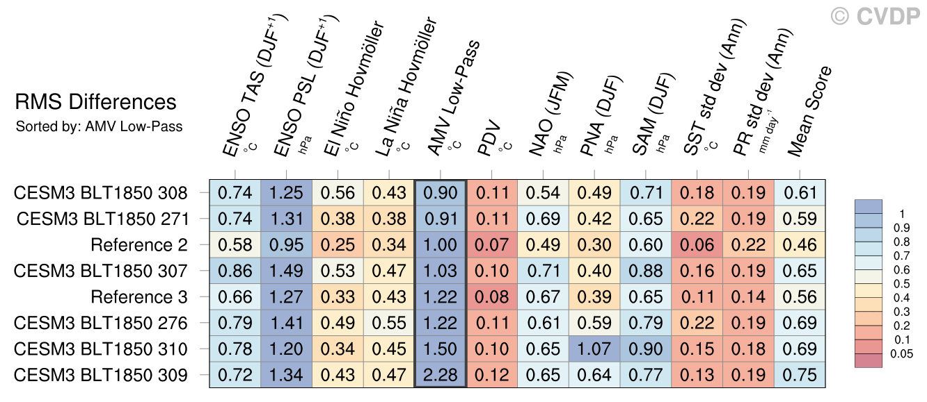 | Sort By: | Namelist (default) | Namelist (Alphabetically) | ENSO TAS | ENSO PSL | El Niño Hovmöller La Niña Hovmöller | AMV Low Pass | PDV | NAO | PNA | SAM | SST std dev | PR std dev | Mean Score |