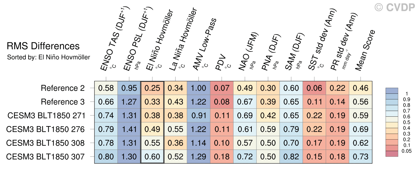 | Sort By: | Namelist (default) | Namelist (Alphabetically) | ENSO TAS | ENSO PSL | El Niño Hovmöller | La Niña Hovmöller | AMV Low-Pass | PDV | NAO | PNA | SAM | SST std dev | PR std dev | Mean Score |