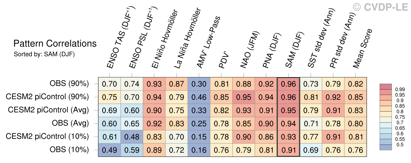 | Sort By: | Namelist (default) | Namelist (Alphabetically) | ENSO TAS | ENSO PSL | El Niño Hovmöller La Niña Hovmöller | AMV' Low-Pass | PDV' | NAO | PNA | SAM | SST std dev | PR std dev | Mean Score |
