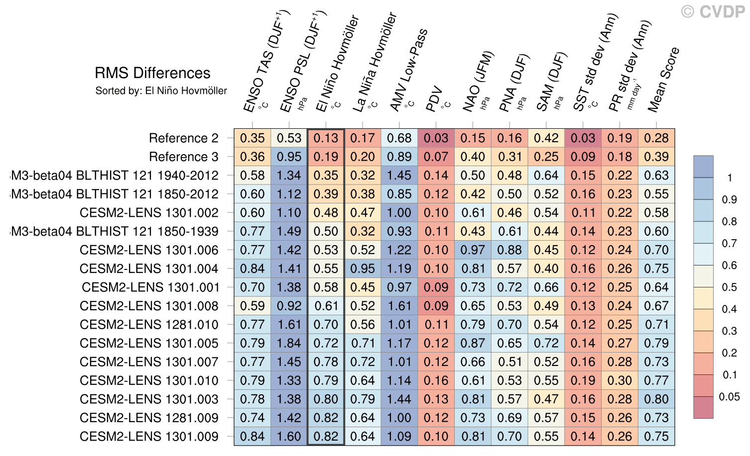 | Sort By: | Namelist (default) | Namelist (Alphabetically) | ENSO TAS | ENSO PSL | El Niño Hovmöller | La Niña Hovmöller | AMV Low-Pass | PDV | NAO | PNA | SAM | SST std dev | PR std dev | Mean Score |