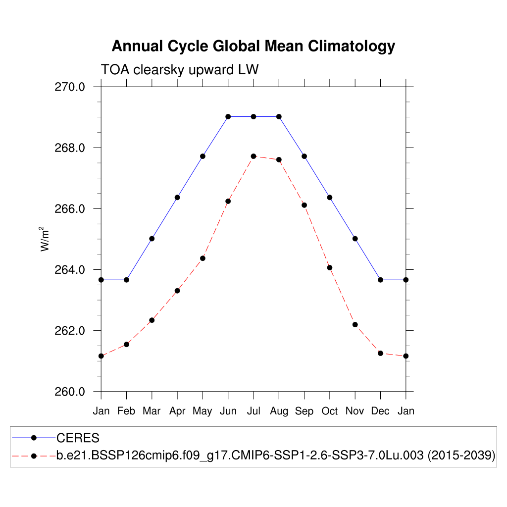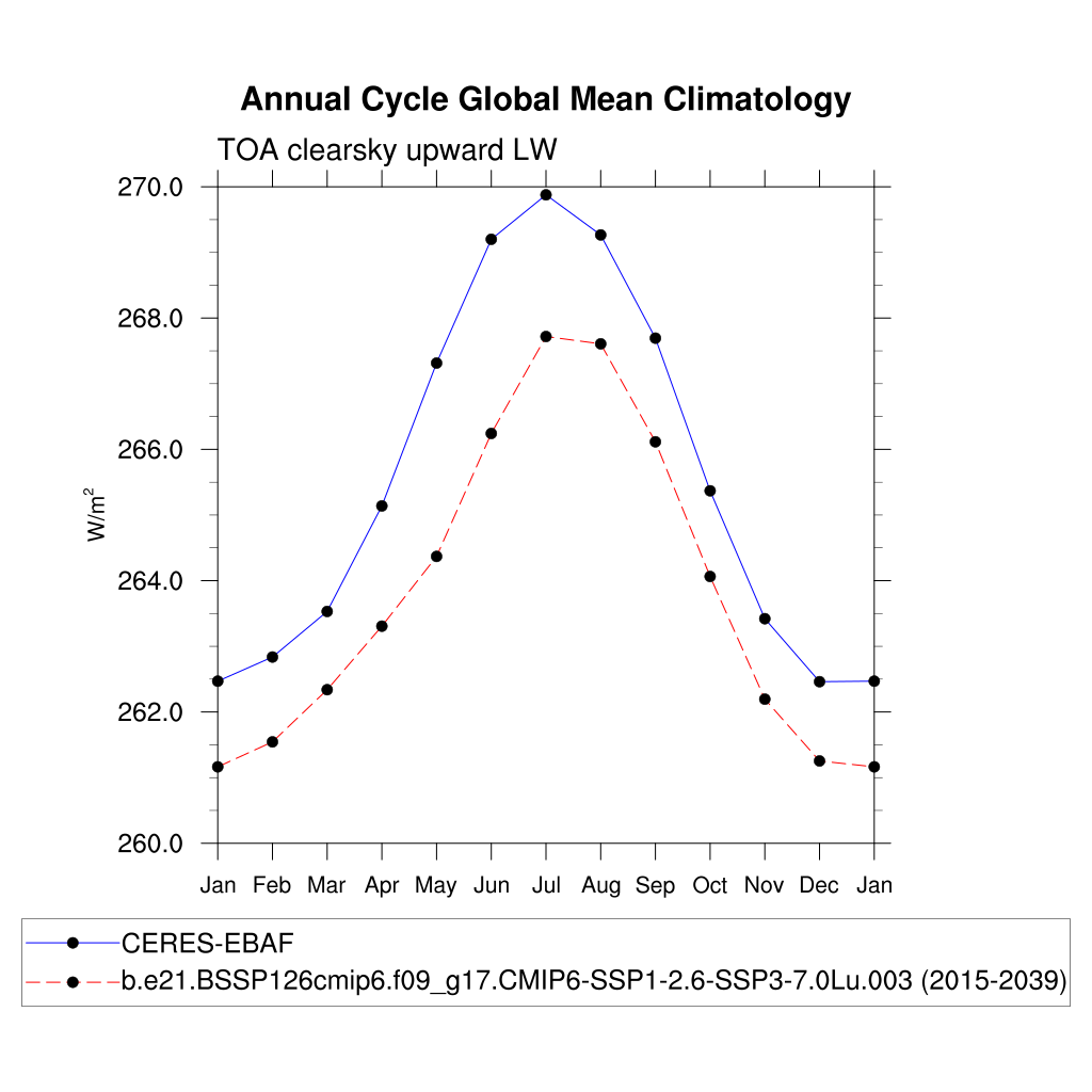 FLUTC TOA clearsky upward LW flux plot
