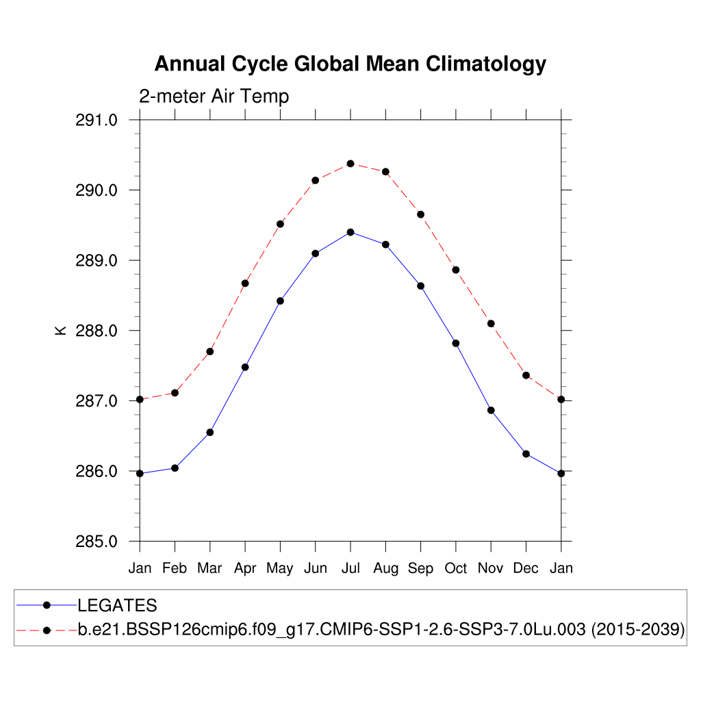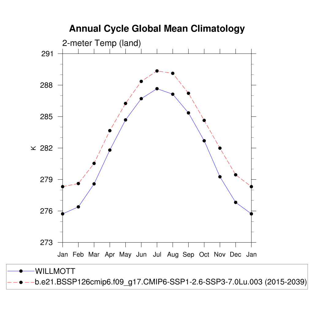 TREFHT 2-meter air temperature (land) plot