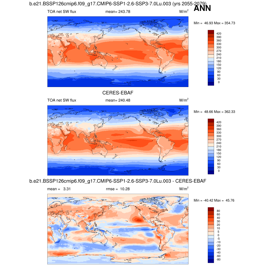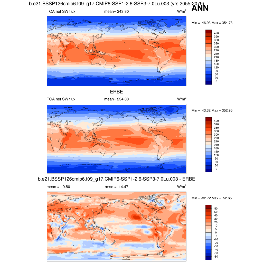 FSNTOA * TOA net SW flux plot plot plot