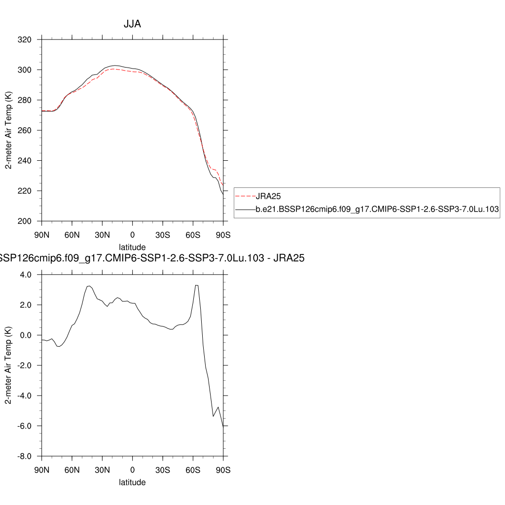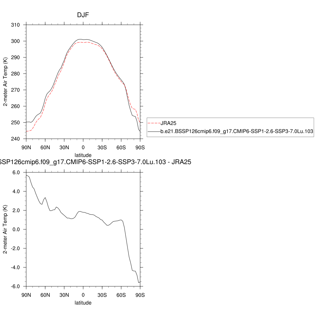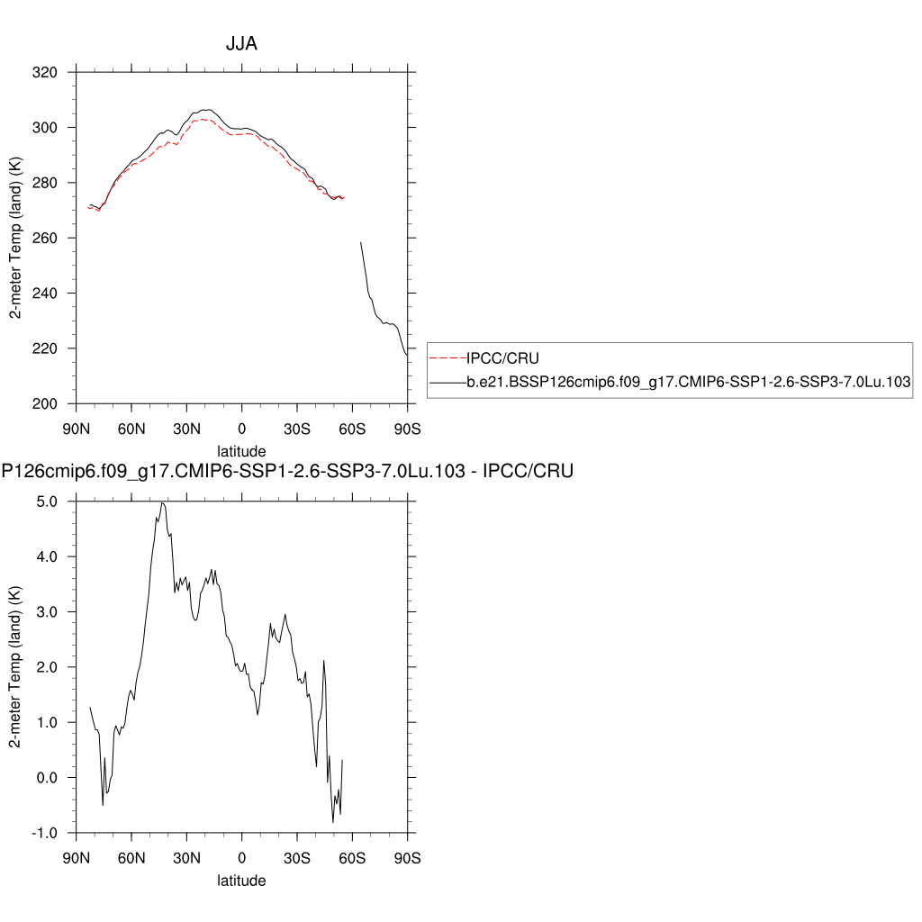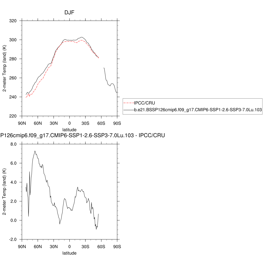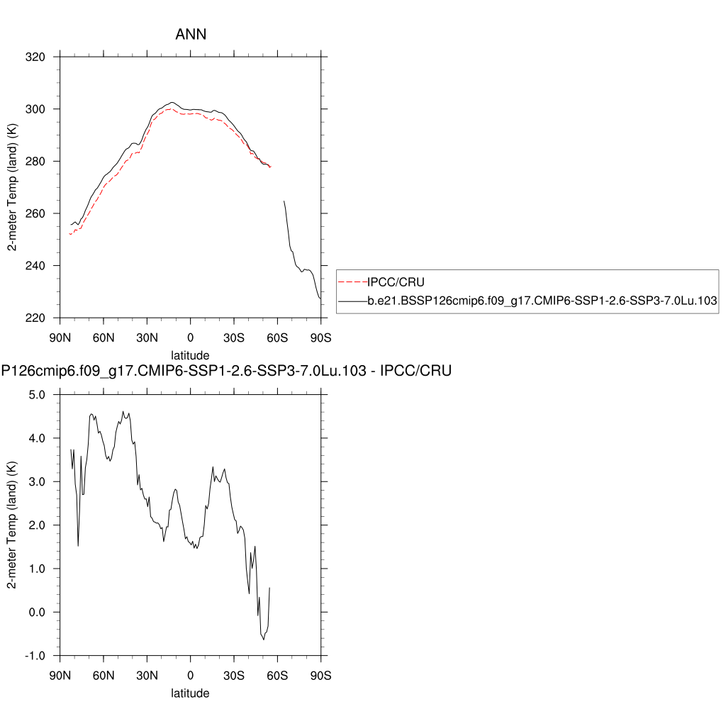 TREFHT * 2-meter air temperature (land) plot plot plot
