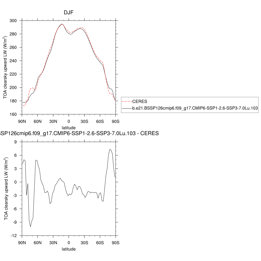 FLUTC * TOA clearsky upward longwave flux plot plot plot