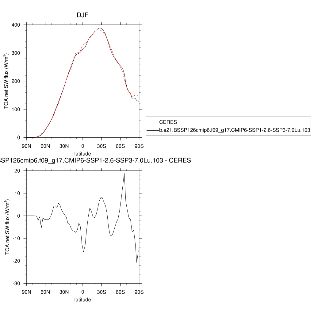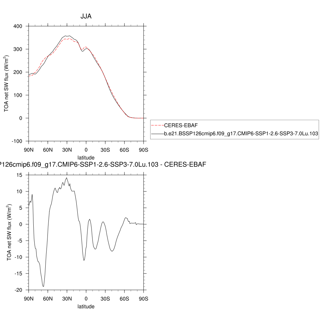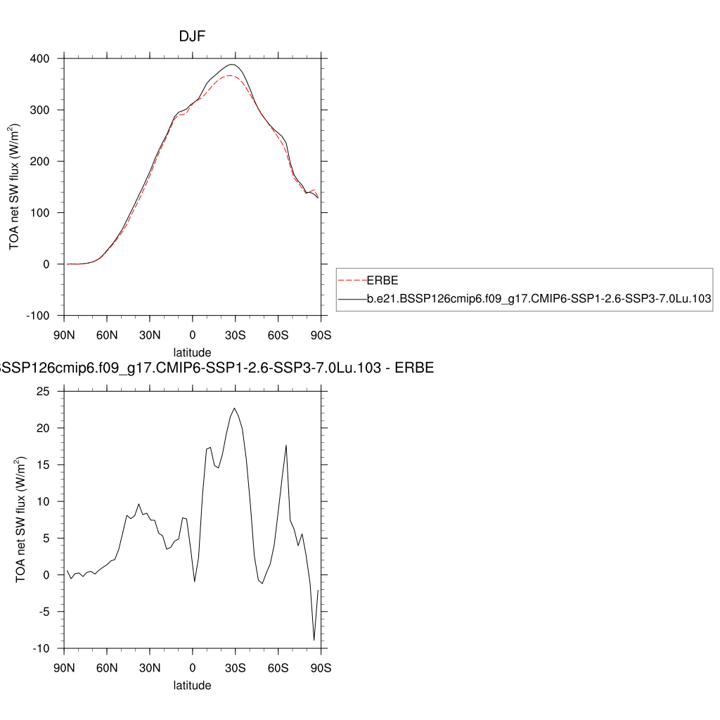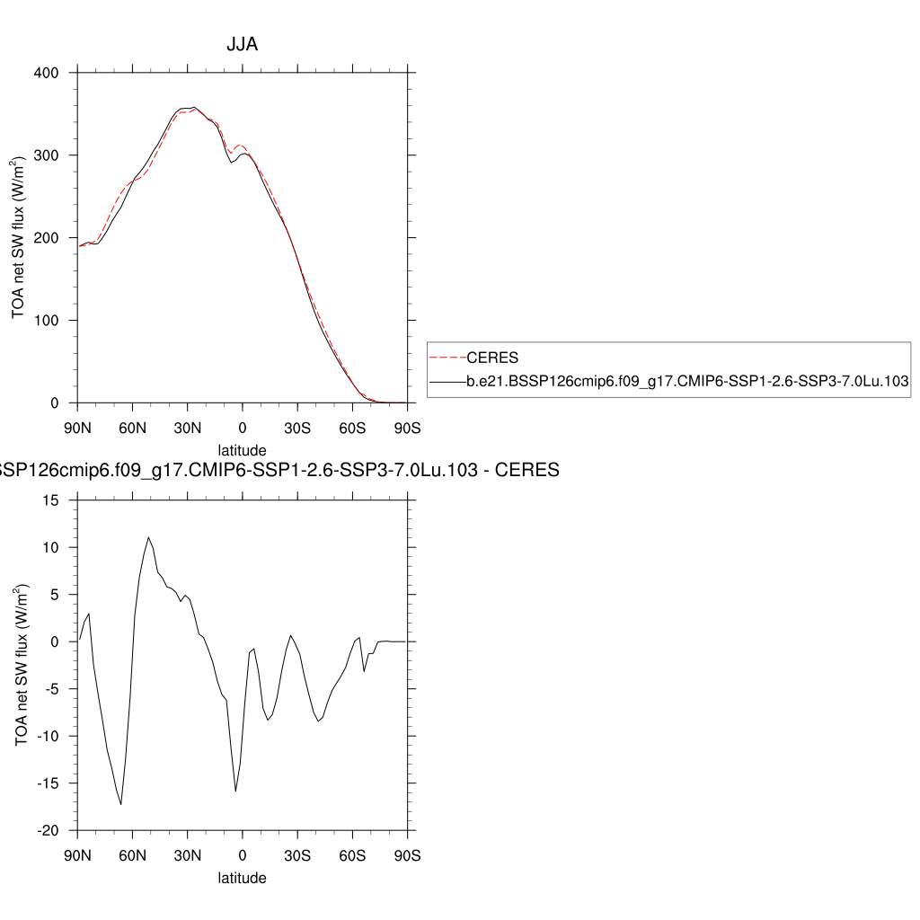 FSNTOA * TOA net SW flux plot plot plot