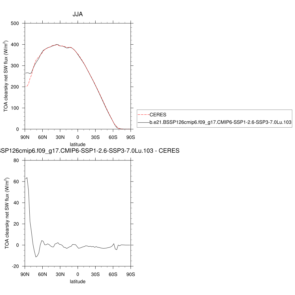FSNTOAC * TOA clearsky net SW flux plot plot plot