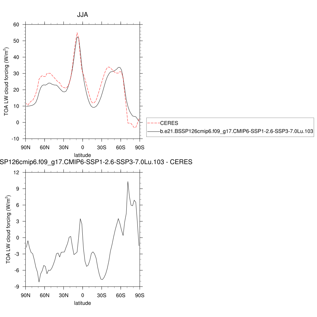 LWCF * TOA longwave cloud forcing plot plot plot