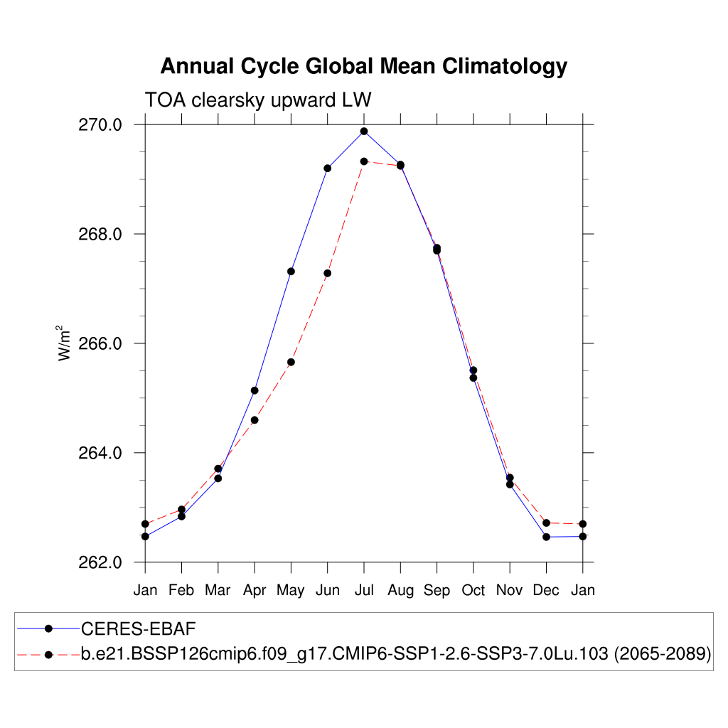 FLUTC TOA clearsky upward LW flux plot