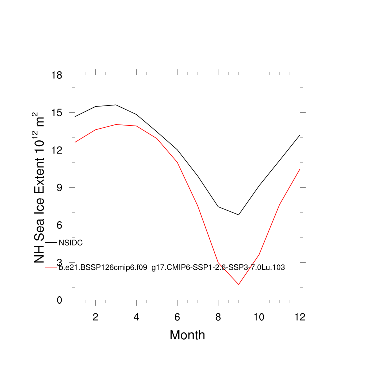 Climatological Monthly Mean Extent vs Obs plot plot