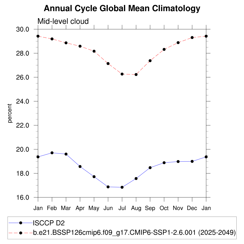 CLDMED_ISCCPCOSP Mid-topped cloud amount (tau > 0.3) plot