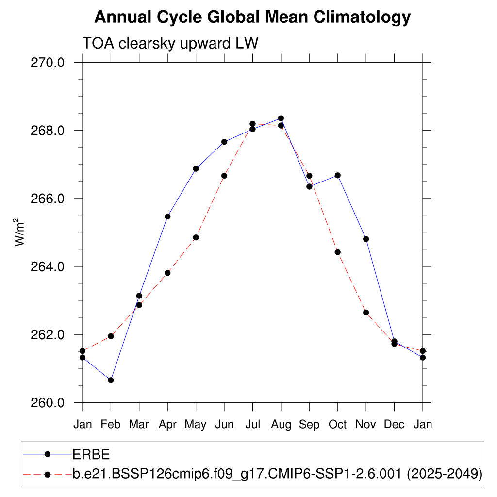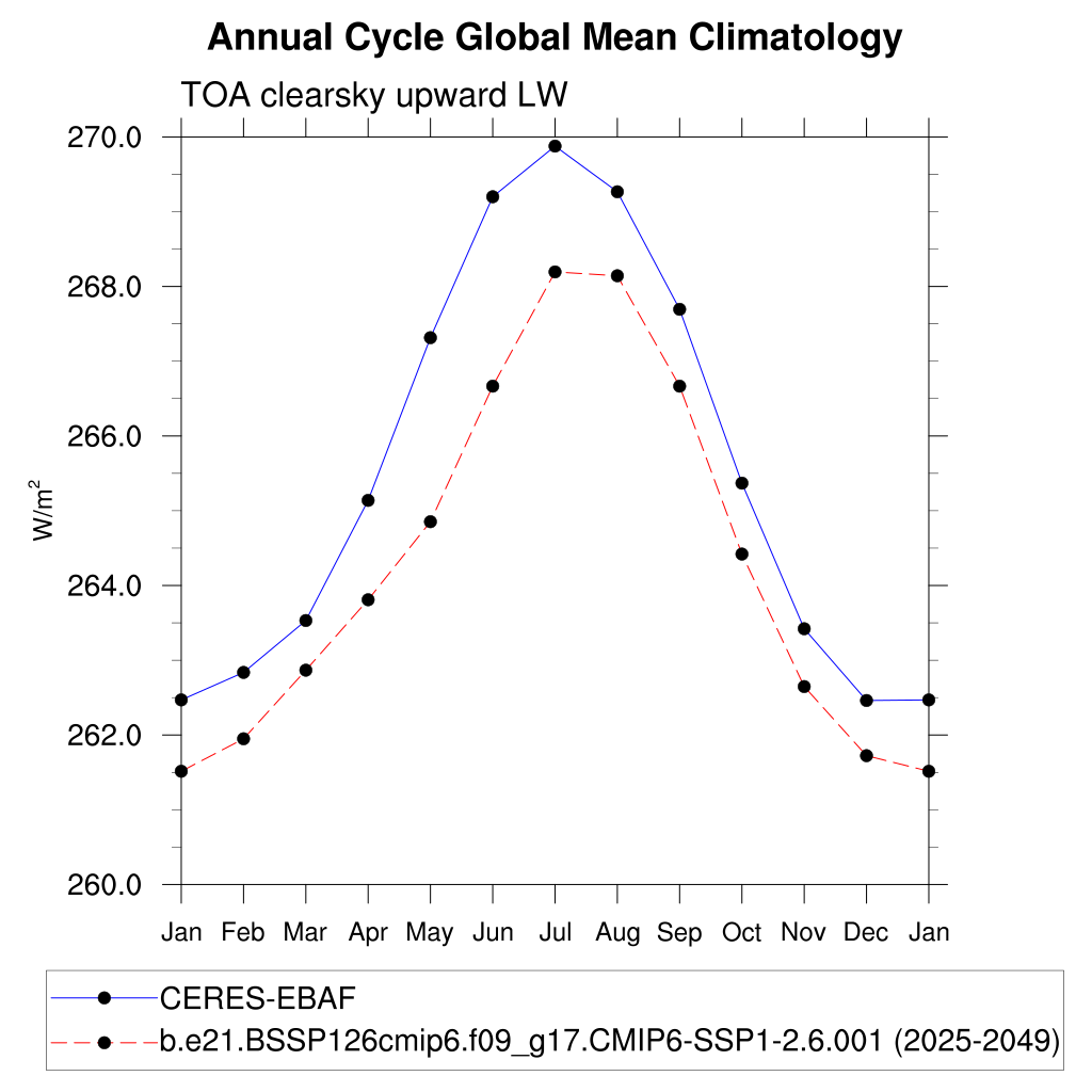 FLUTC TOA clearsky upward LW flux plot