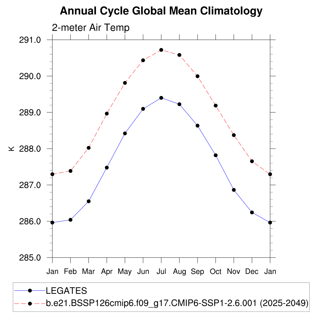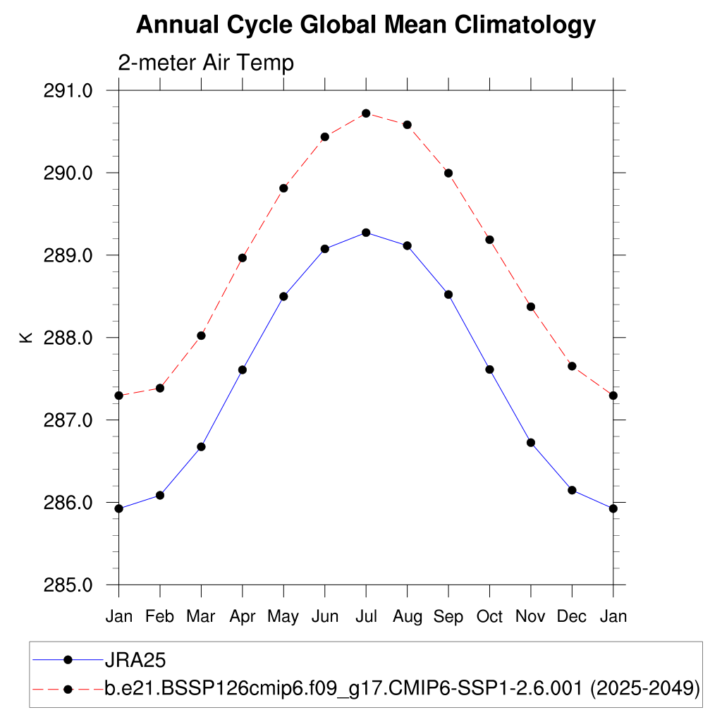 TREFHT 2-meter air temperature (land) plot