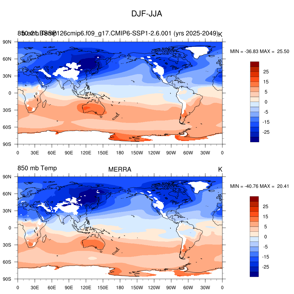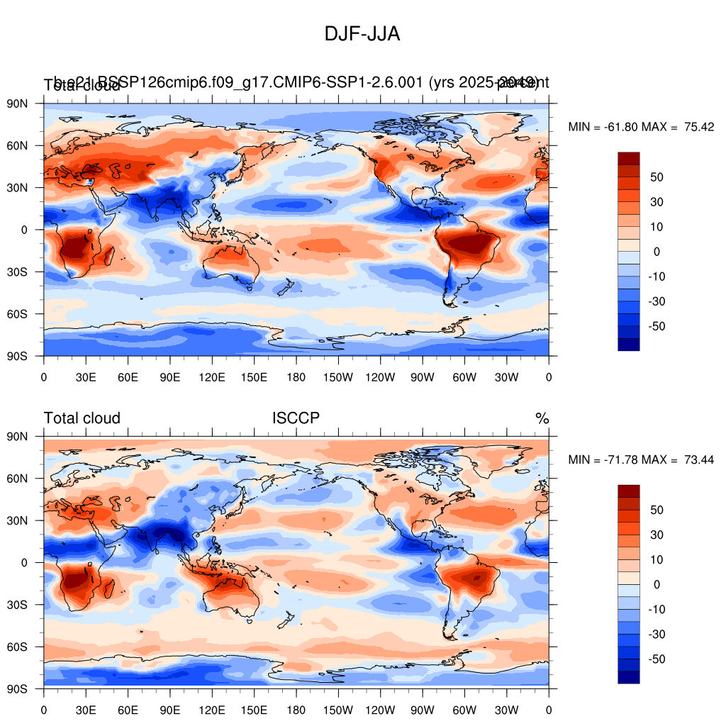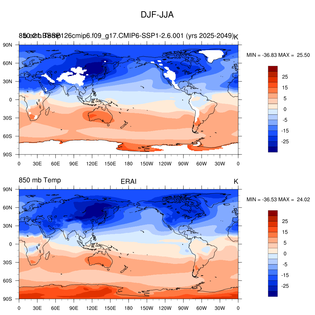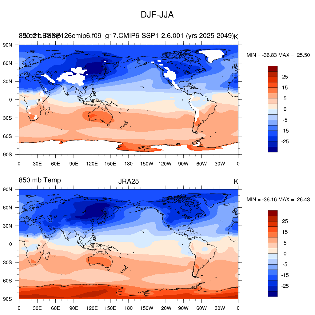 b.e21.BSSP126cmip6.f09_g17.CMIP6-SSP1-2.6.001DIAG Set 9 - Horizontal contour plots of DJF-JJA differences