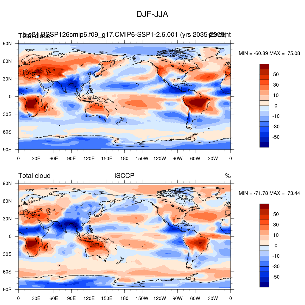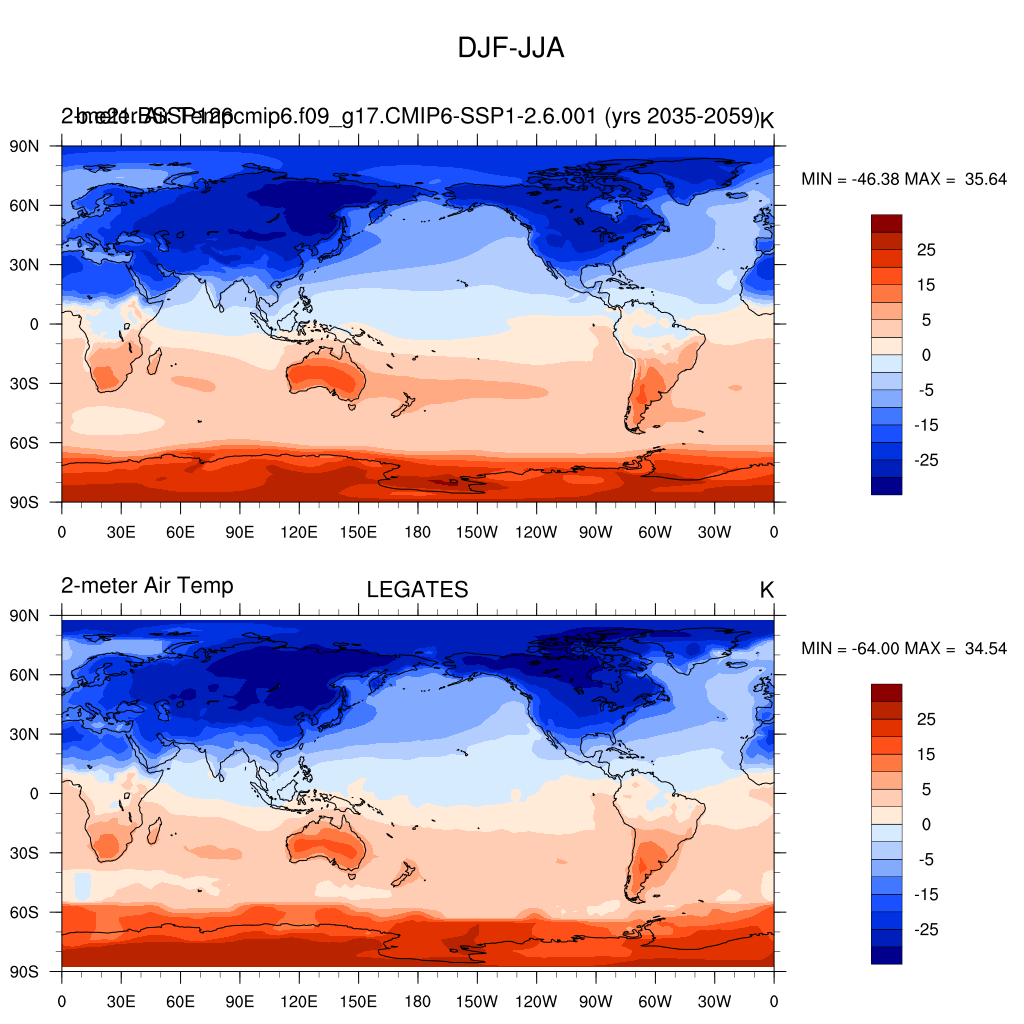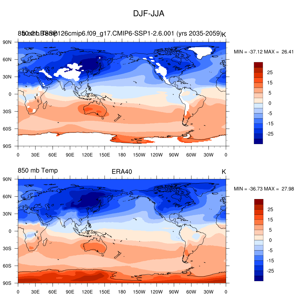 b.e21.BSSP126cmip6.f09_g17.CMIP6-SSP1-2.6.001DIAG Set 9 - Horizontal contour plots of DJF-JJA differences