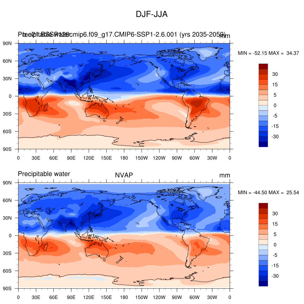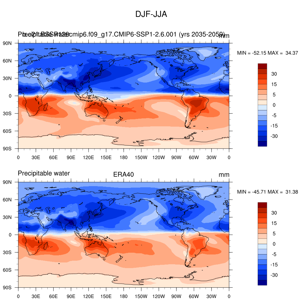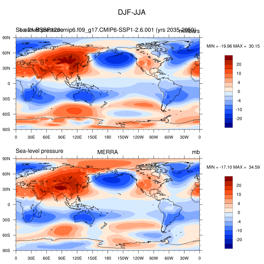 b.e21.BSSP126cmip6.f09_g17.CMIP6-SSP1-2.6.001DIAG Set 9 - Horizontal contour plots of DJF-JJA differences