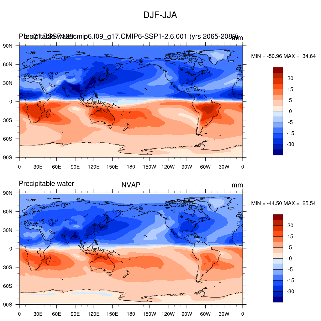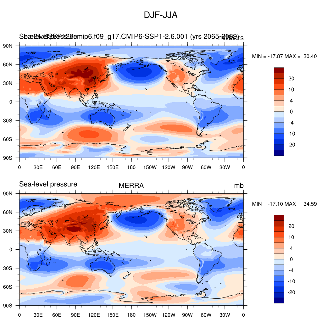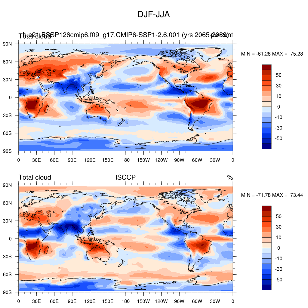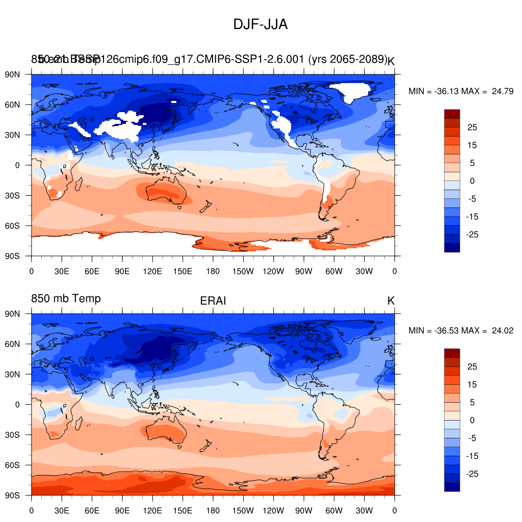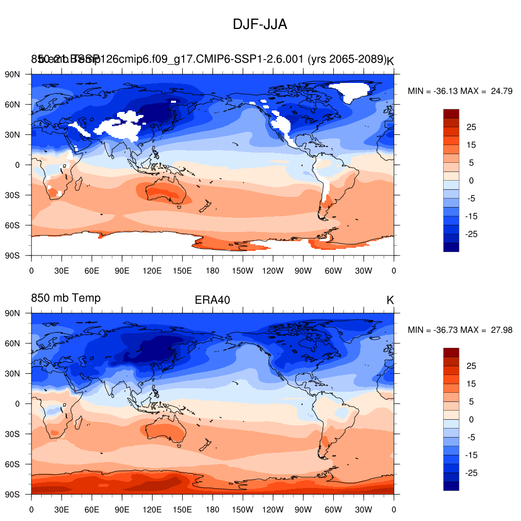 b.e21.BSSP126cmip6.f09_g17.CMIP6-SSP1-2.6.001DIAG Set 9 - Horizontal contour plots of DJF-JJA differences