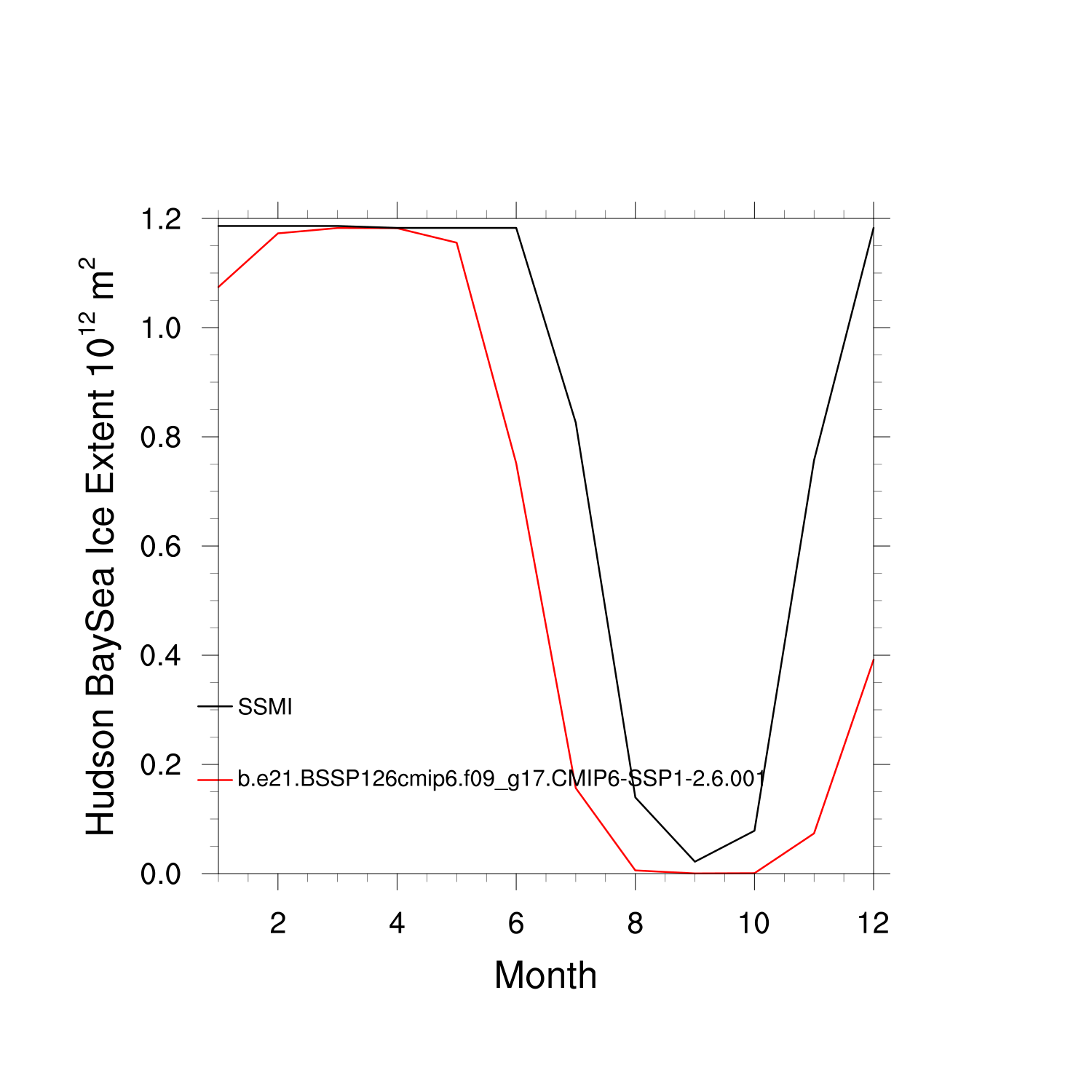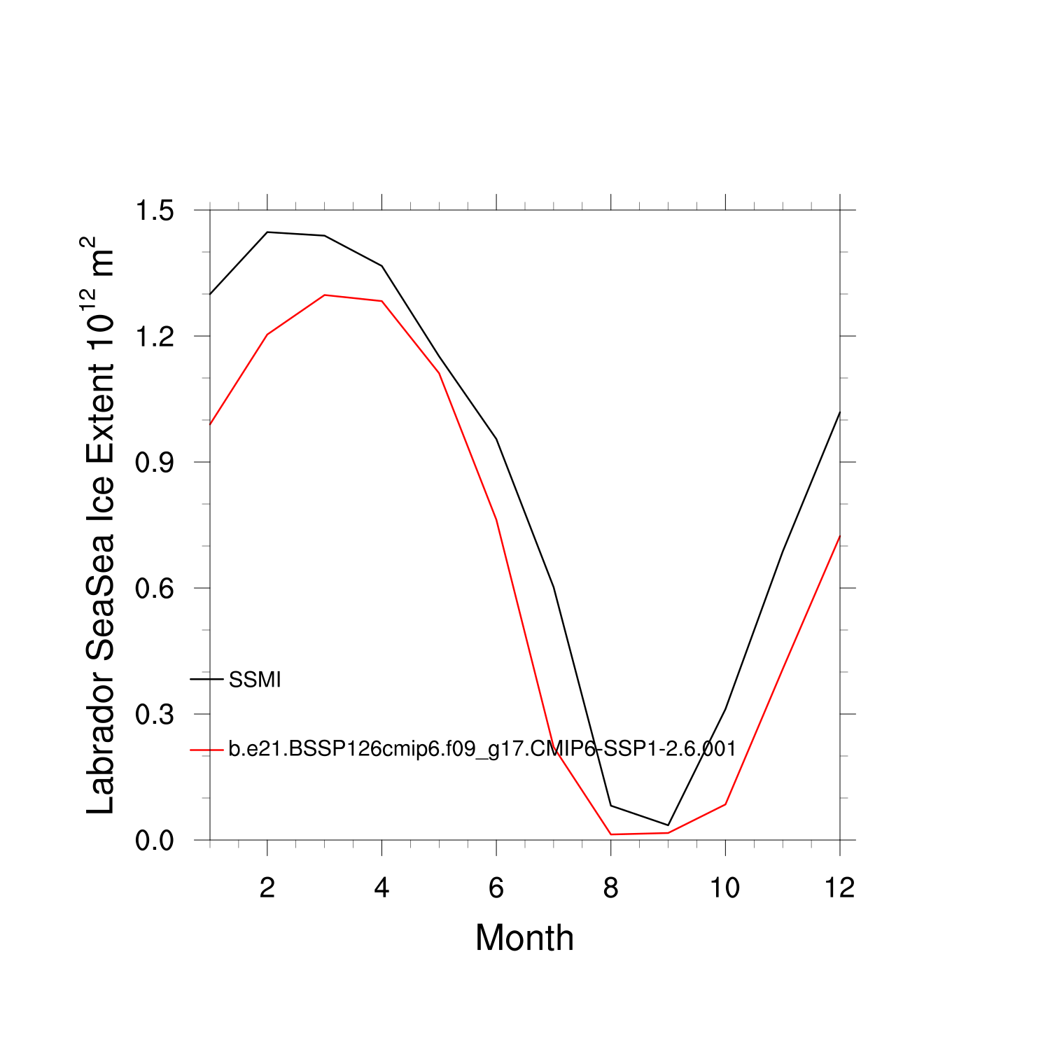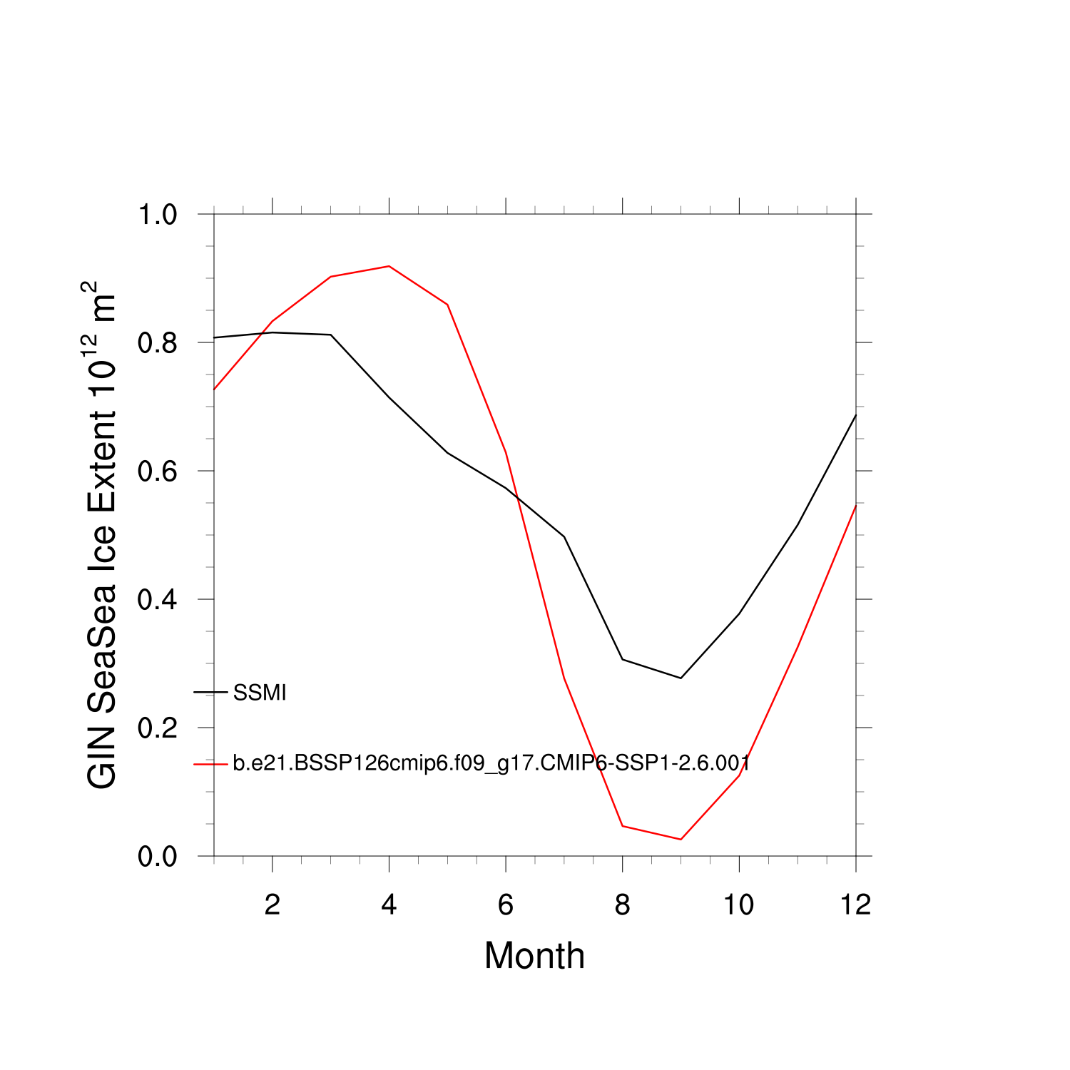 Climatological Monthly Mean Extent vs Obs plot