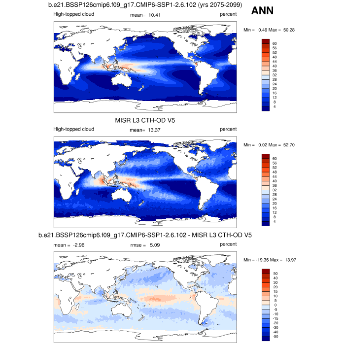 | CLDHGH_MISR | High-topped cloud amount (tau > 0.3) | plot | plot | plot |