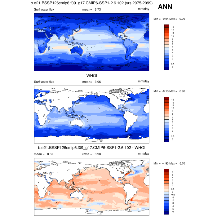 | PRECT * | Precipitation rate (ocean) | plot | plot | plot |